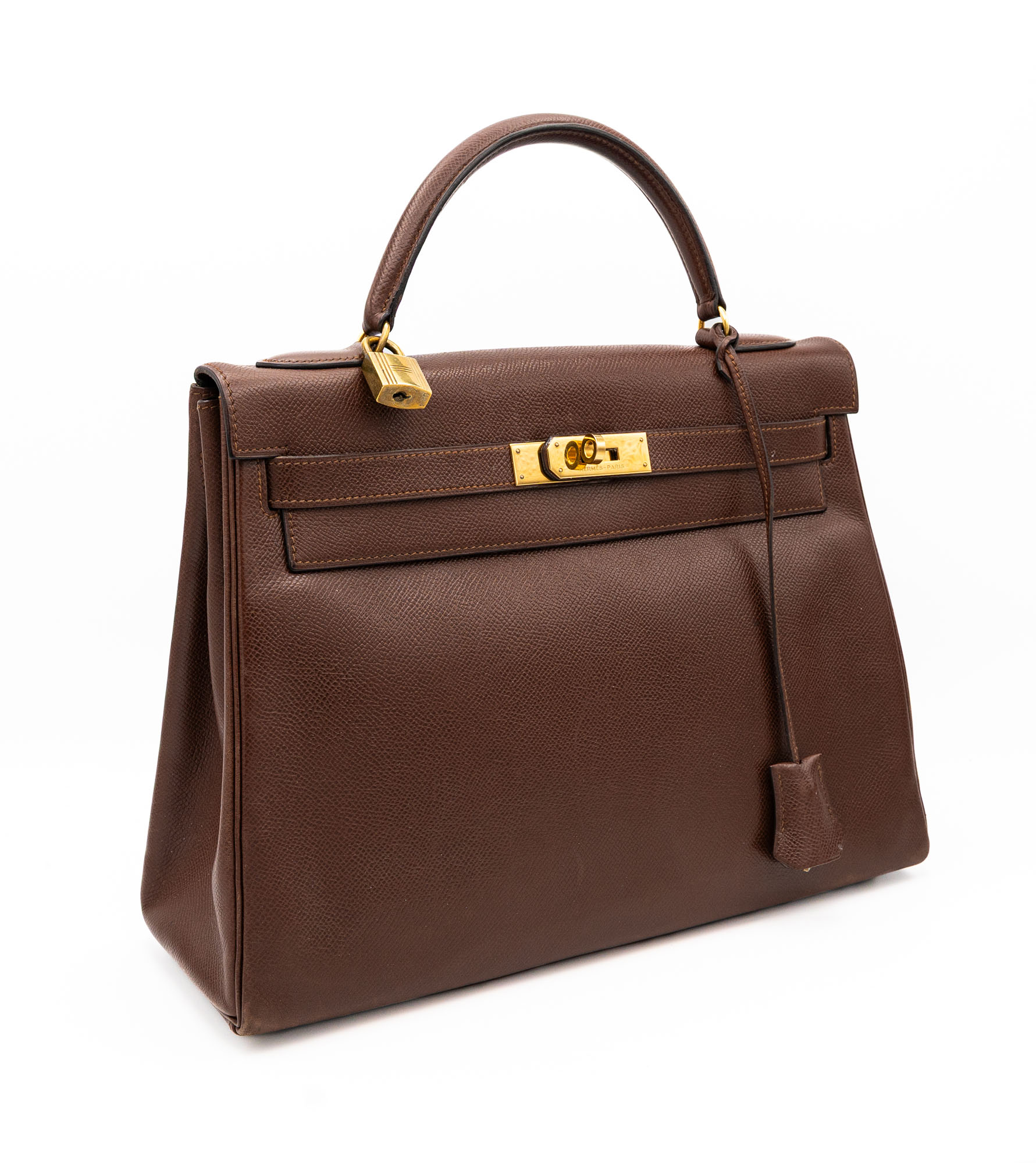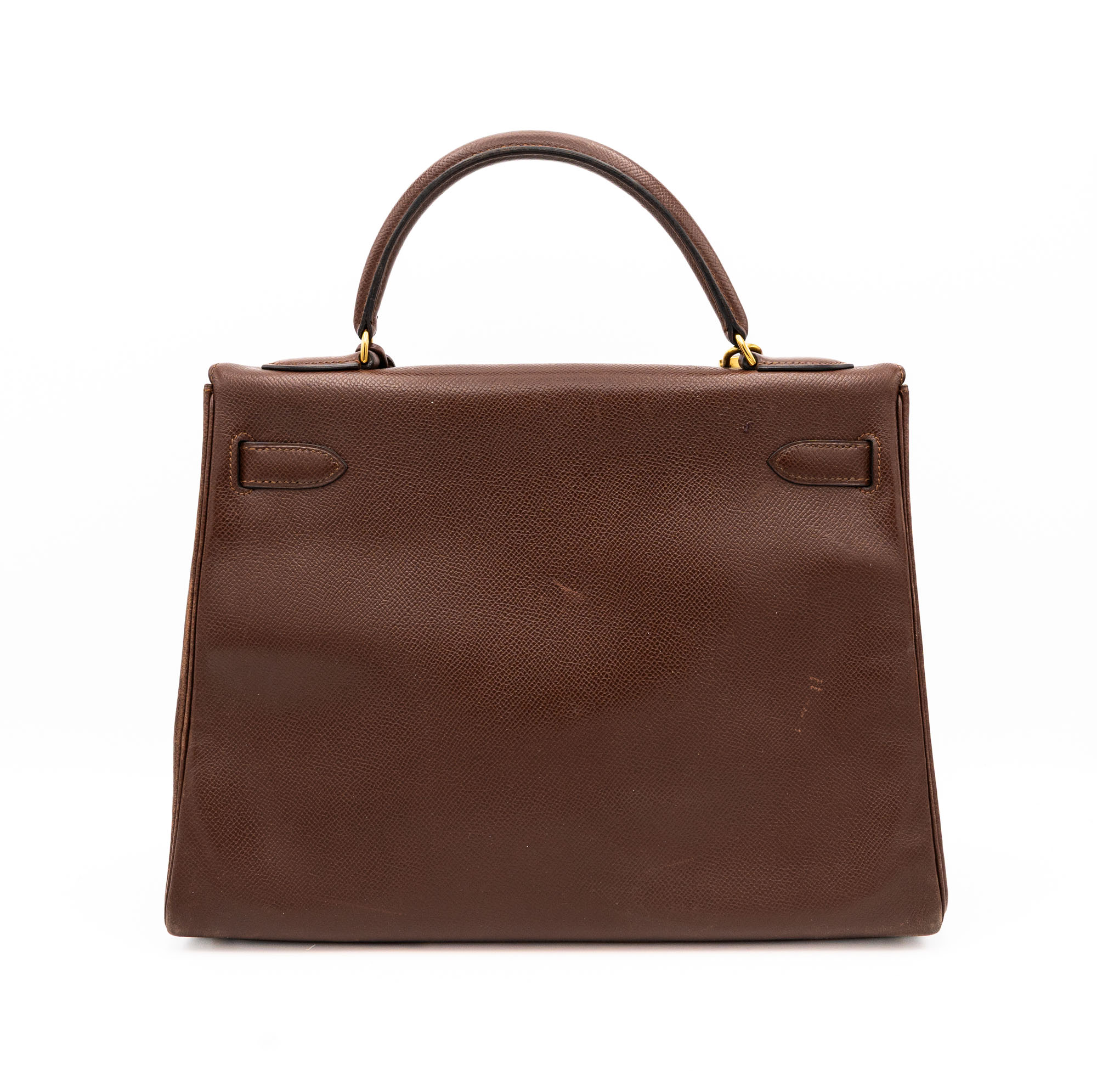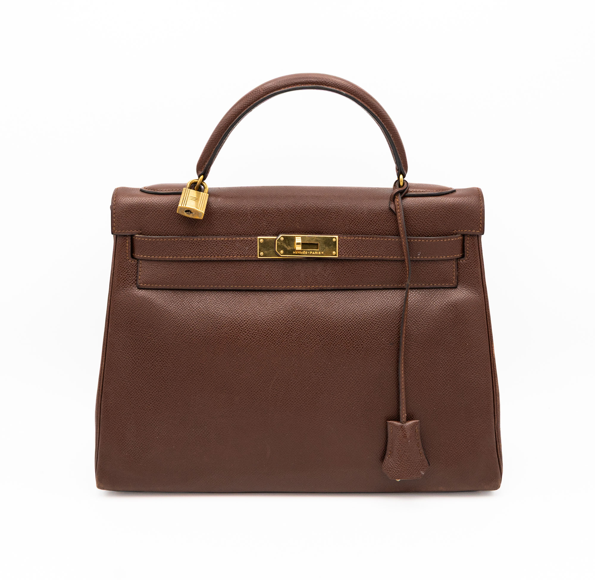 HermèsBorsa Kelly 32 Retourné GHW1990In pelle e dettagli in metallo dorato32 x 23 x 12 cmCorredata di sachetto, chiave, lucchetto, tracolla e scatolaSegni di uso