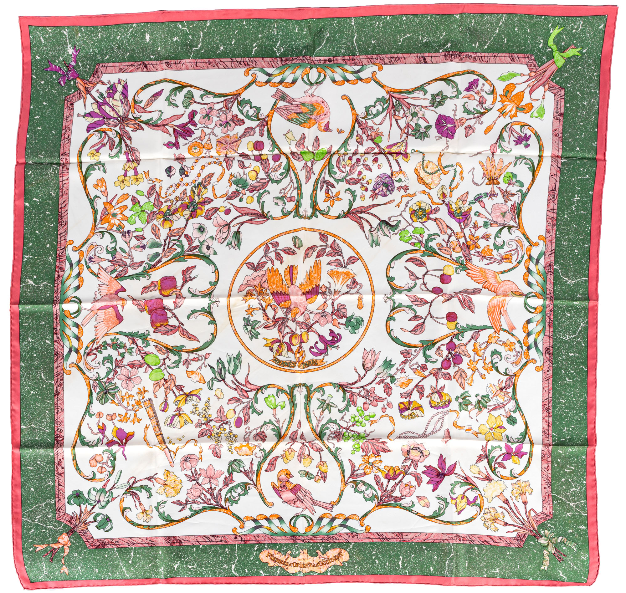 HermèsFoulard 'Pierre d'Orient et d'Occident'Prima edizione 1988, Riedizione 1993/RectaIn seta, Zoe Pauwels90 x 90 cmCon scatolaIn buone condizioni