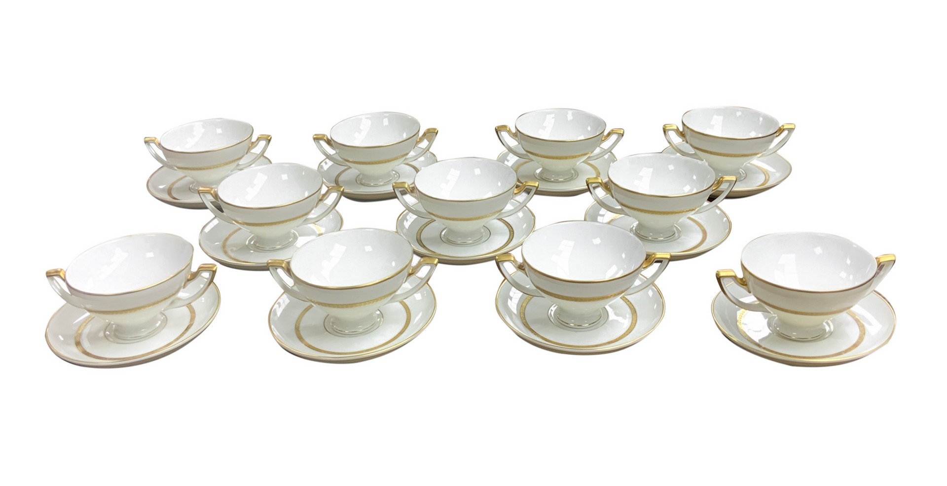 H & C ‘Selb Bavaria’ Heinrich - Servizio consommé Porcellana In porcellana con bordo interno in oro. Composto da 11 tazzine, 11 piattini