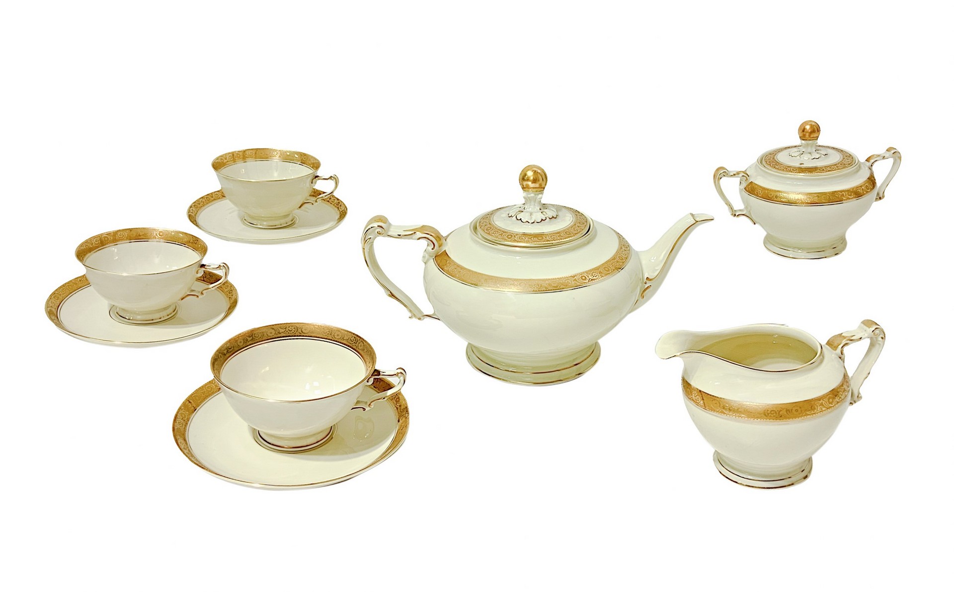 Servizio da the H&G Selb Bavaria Germany Heinrich Ivory Body composto da teiera, zuccheriera, lattiera e 12 tazze con piattiniIvory Body composto da teiera, zuccheriera, lattiera e 12 tazze con piattini