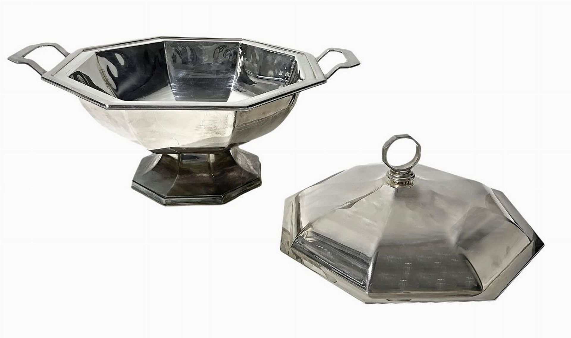 Zuppiera in sheffield, Silver plate, Petruzzi & Branca. H cm 23, diametro 42