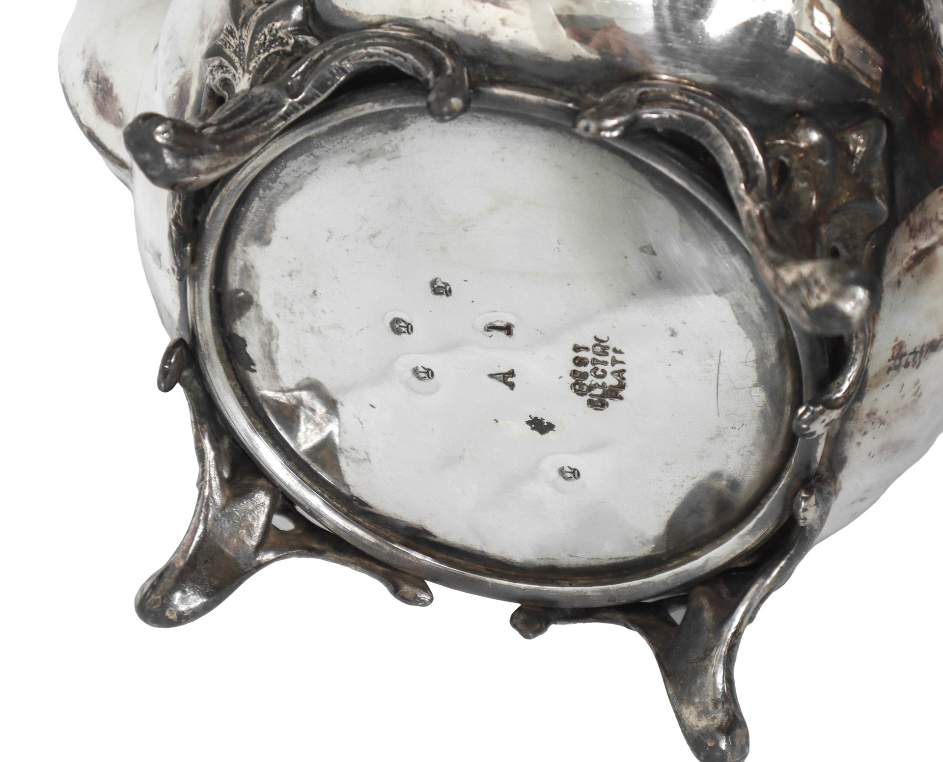 Teiera con lati bombati e decori floreali placcata in argento H cm 22x22 Alla base punzone Best Electr PlateAlla base punzone Best Electr Pfine