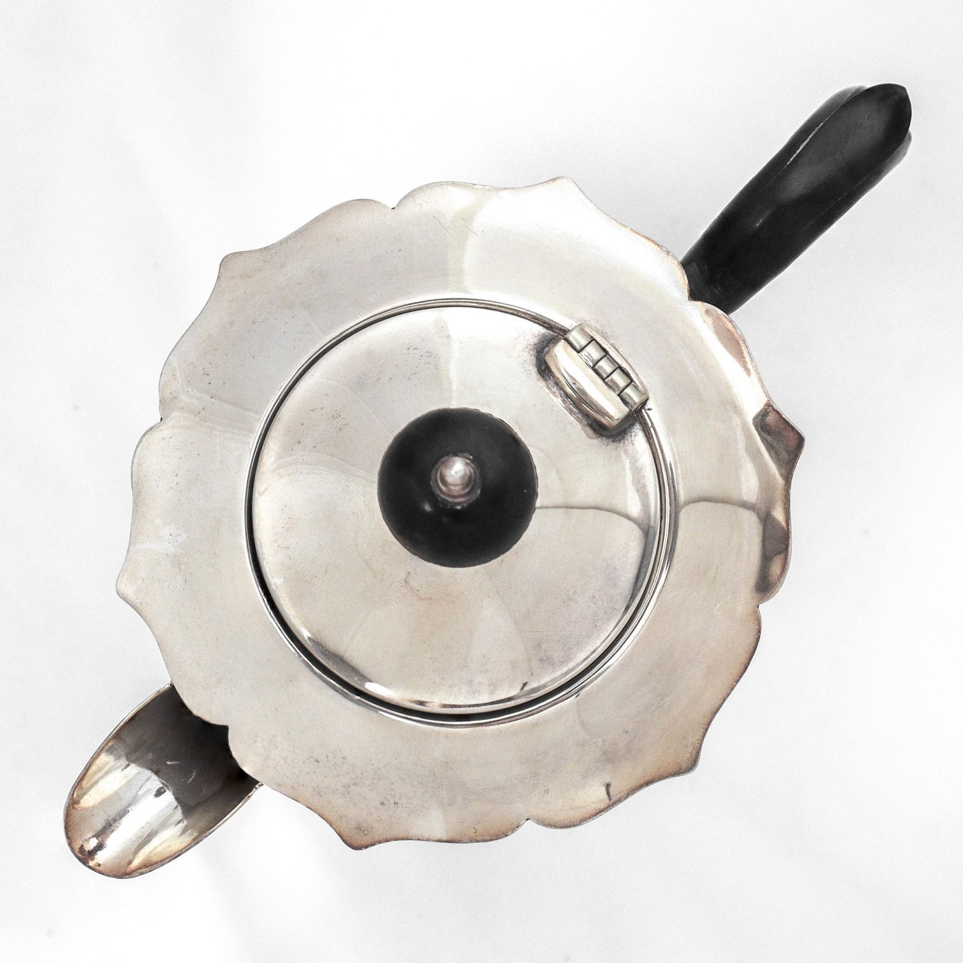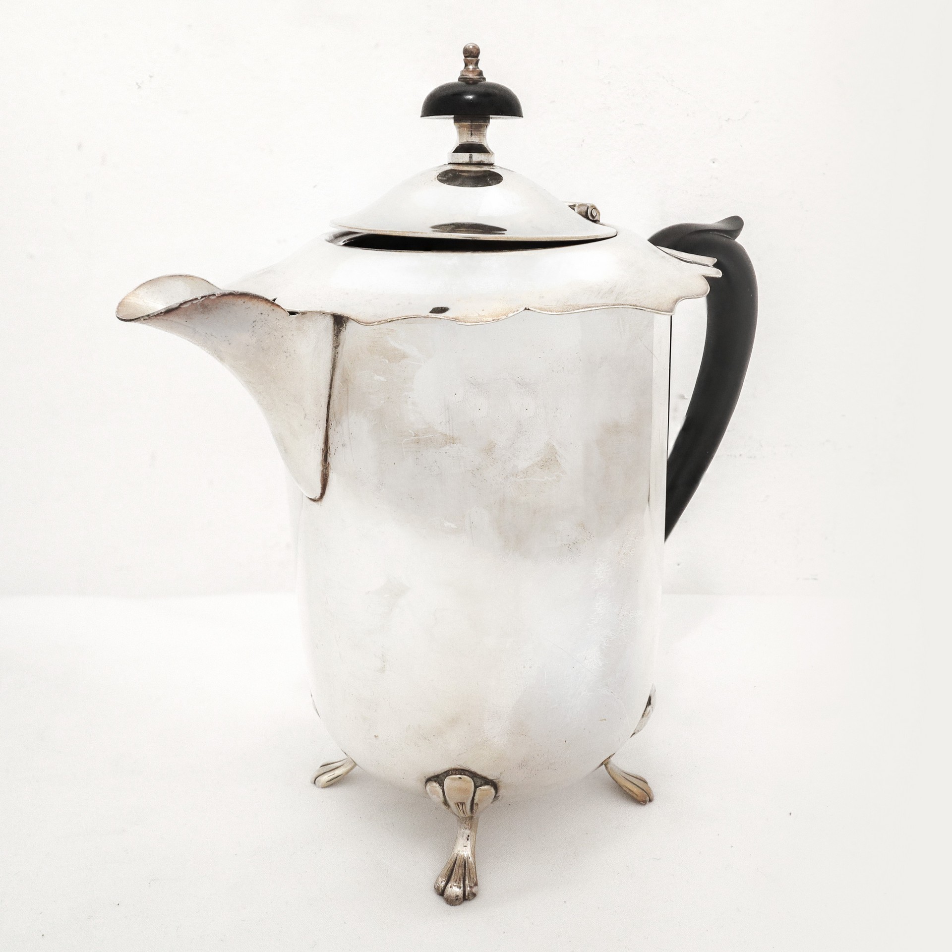 Teiera inglese silver plated con piedi zoomorfi e bordo smerlato