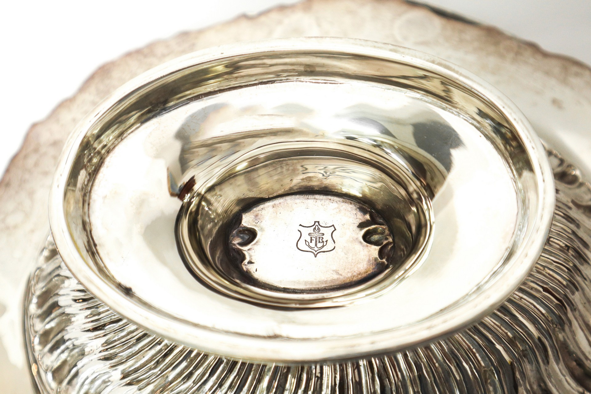 Portadolci in sheffield con bordo martellato decorato h cm 11X33