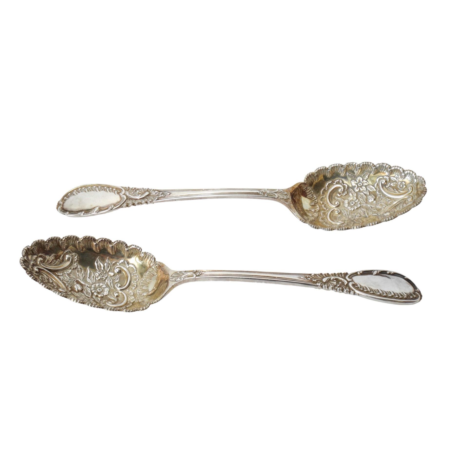 Mappin & Webb - Coppia di cucchiai da portata vittoriani decorati a sbalzo in sheffield inglese