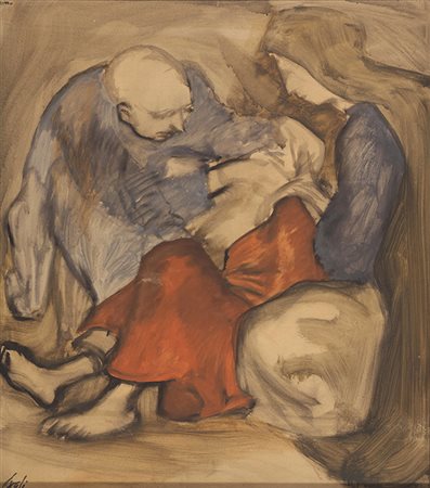 Corrado Cagli, Tempera su carta applicata su tela, 80x70 cm, Maternità, 1951; Firmato e datato in basso a sinistra; Archivio Corrado Cagli su foto