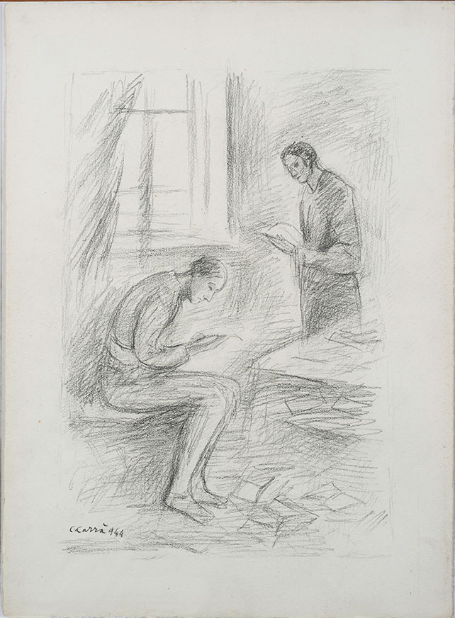 Carlo Carrà, Matita su carta, 40x30 cm, Senza titolo, 1944; Firmato e datato in basso a sinistra; Autentica su foto di Massimo Carrà del 30 marzo 2000