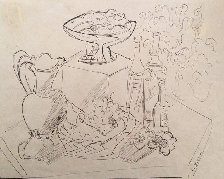 Gino Severini, Matita su carta, 22,5x28 cm, Composizione, 1941/42; Firma in basso a destra; Archivio Severini su foto; Provenienza: Collezione privta, Roma