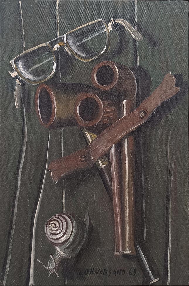 Carmine Conversano, Olio su tela, 30x20 cm, Senza titolo, 1969; Firmato e datato in basso