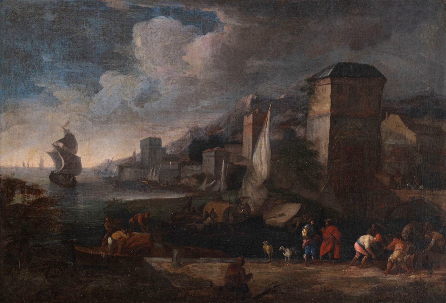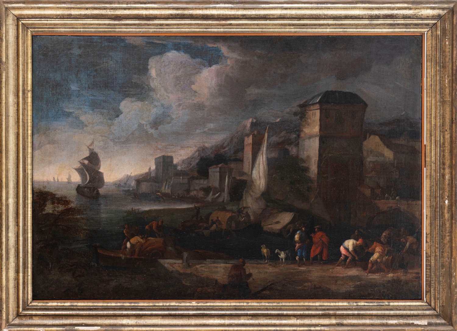 Il dipinto è probabilmente da collocarsi nella fase giovanile del pittore e, in particolare per l'esecuzione delle figure e del veliero, può essere ben confrontato con la Partenza della carovana dei mercanti dal porto (Padova, collezione privata), opera databile entro la prima metà degli anni Novanta del Seicento (cfr. D. Succi, Luca Carlevarijs, Azzano Decimo, 2015, n. 92 a p. 230, fig. 92 pp. 232-233). Nella tela di collezione padovana, così come in quella qui all'incanto, Carlevarijs mostra chiaramente la sua dipendenza stilistica ed iconografica dalla produzione pittorica del Cavalier Tempesta, i cui "paesaggi di gusto classicheggiante e arcadico, connotati da una ricerca di effetti atmosferici", esercitarono sul pittore di Udine una grande influenza durante la sua iniziale attività artistica (D. Succi, ibidem, p. 230).