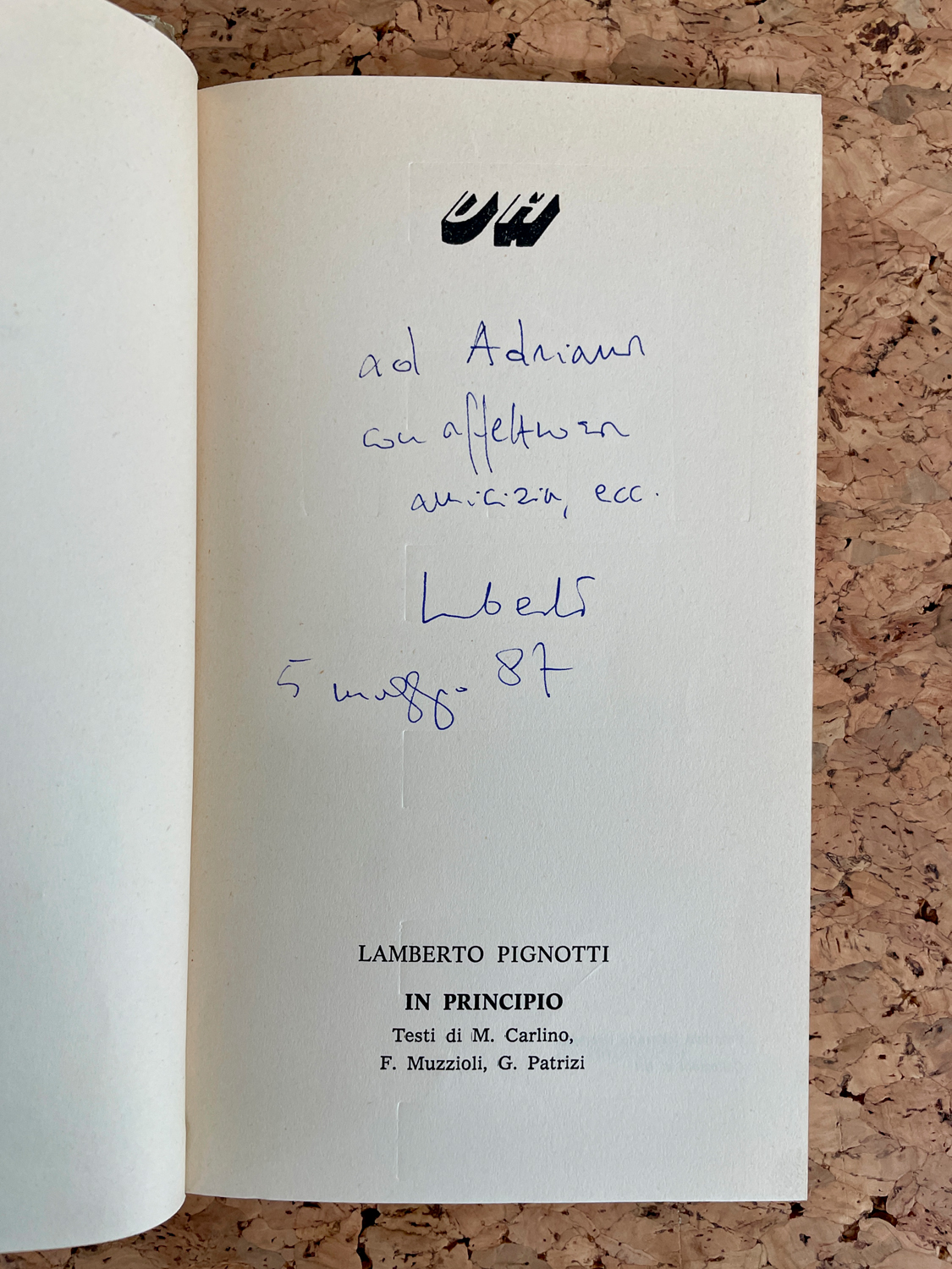 Reca dedica firmata e datata (5 maggio 87) a biro blu all'interno