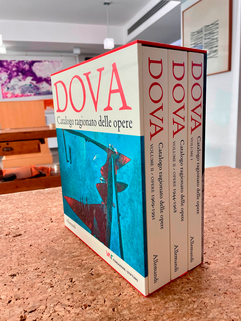 Cofanetto contenente i tre tomi riccamente illustrati del catalogo ragionato delle opere di Gianni Dova, a cura di Enrico Crispolti e Sara Gnagnetti: