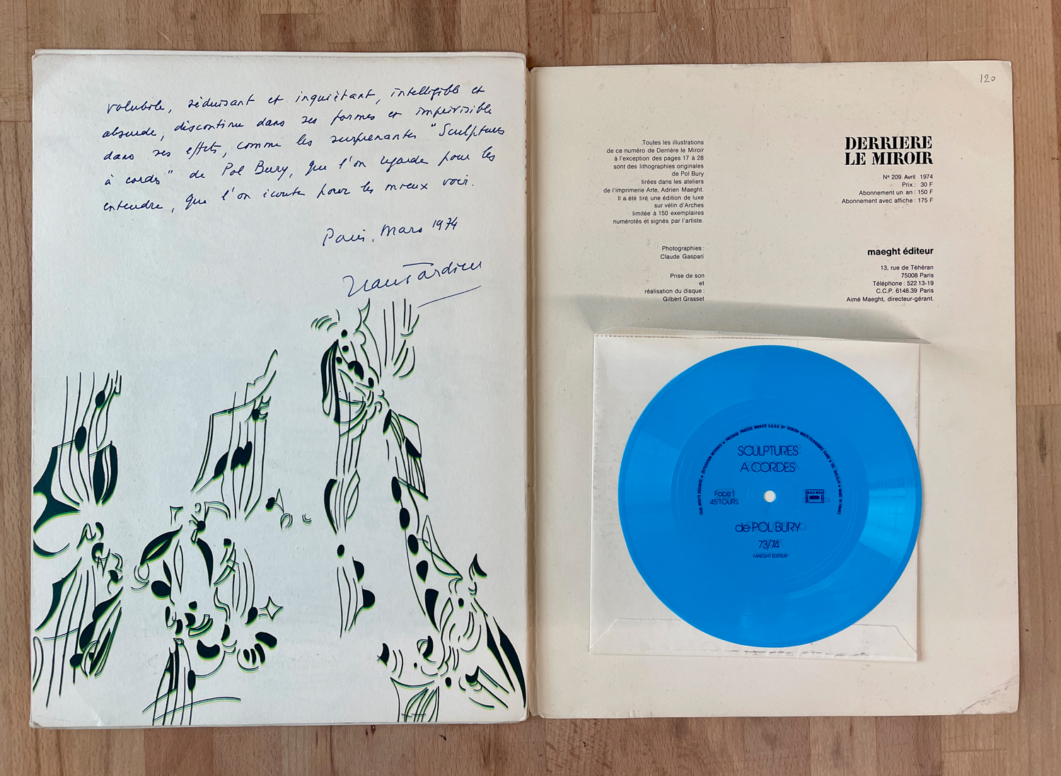 Numero speciale 209 dell'Aprile 1974 della celebre edizione d'arte 'Derriere le miroir' interamente dedicato a Pol Bury.