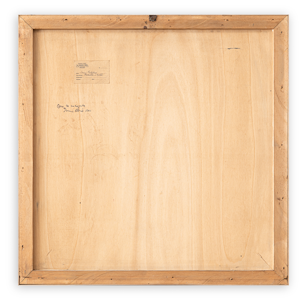 Etichetta e timbro della Galleria d'Arte La Nuova Pesa (RM) al retro