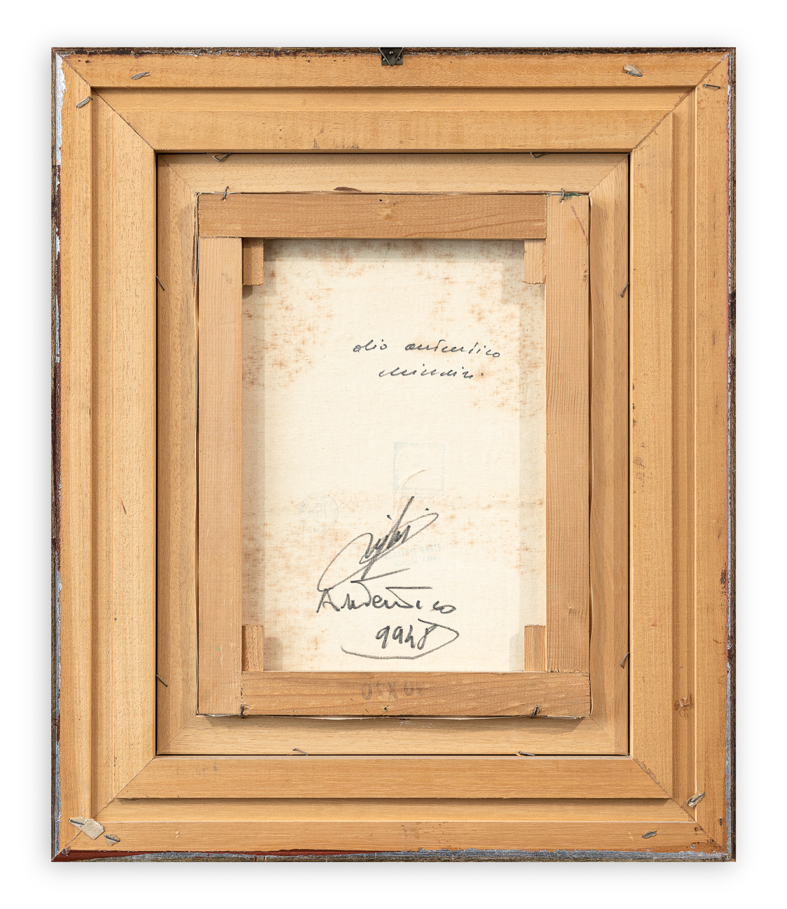 Firma, tecnica e dichiarazione di autenticità dell'Artista al retro