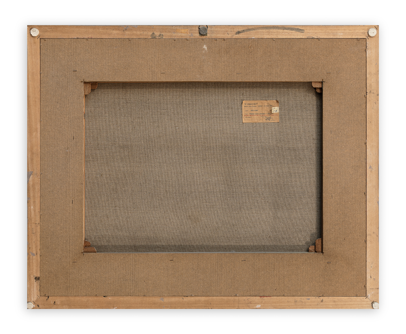 Etichetta della Galleria l'Approdo (TO), con caratteristiche tecniche dell'opera, al retro