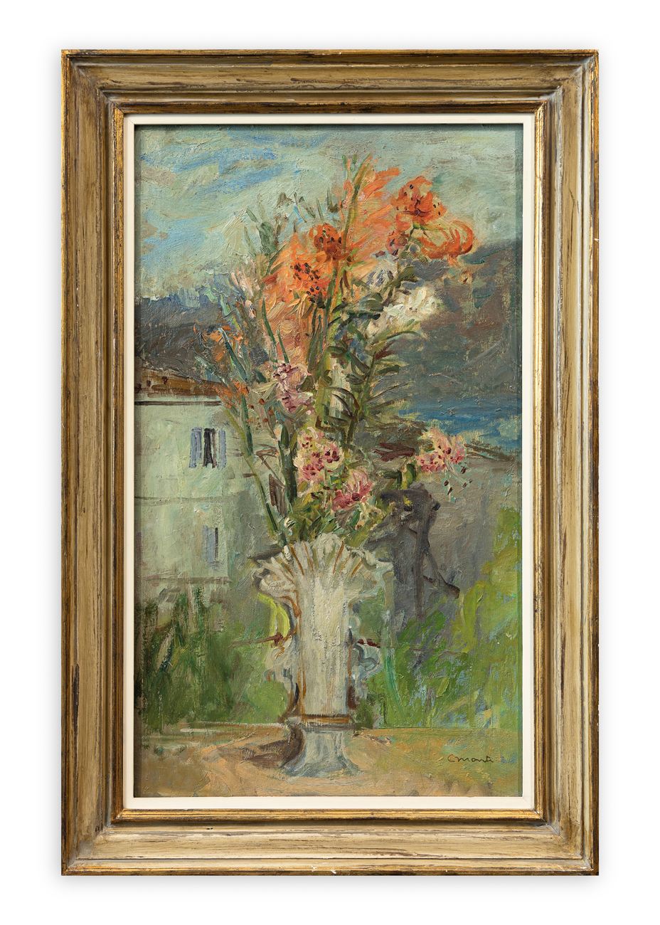 CESARE MONTI (1891-1959) - Vaso di fiori all'aperto