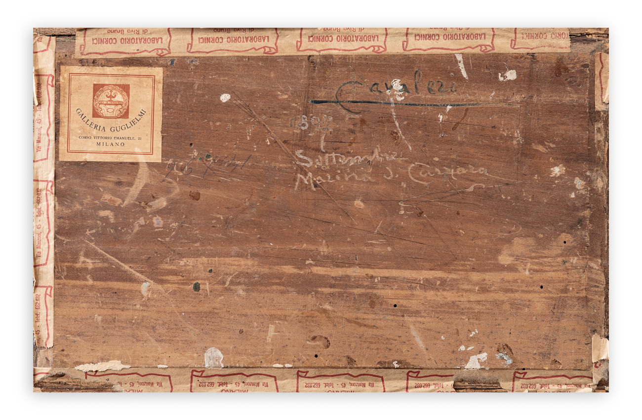 Firma al retro e timbro della Galleria Guglielmi (MI) al retro