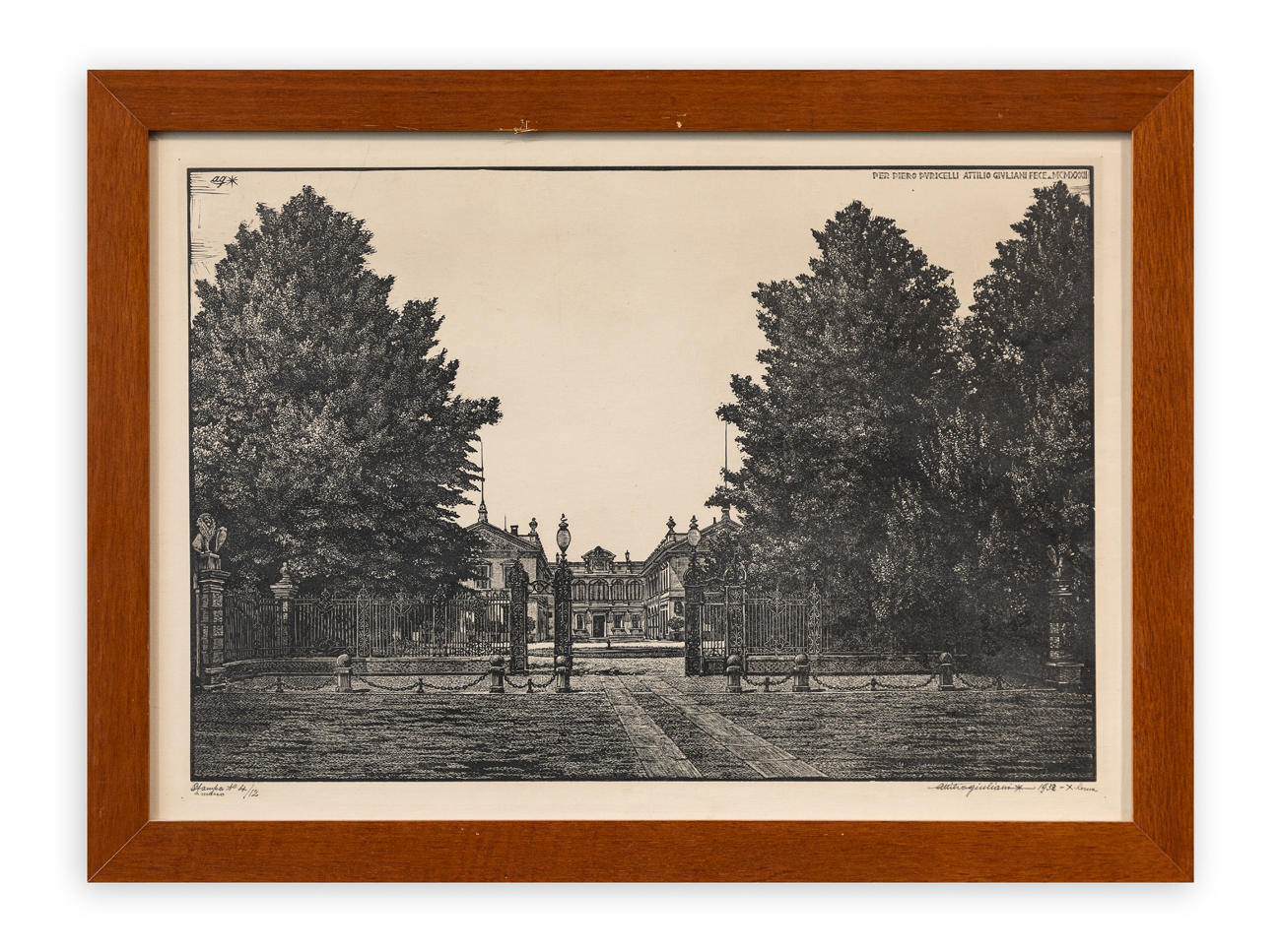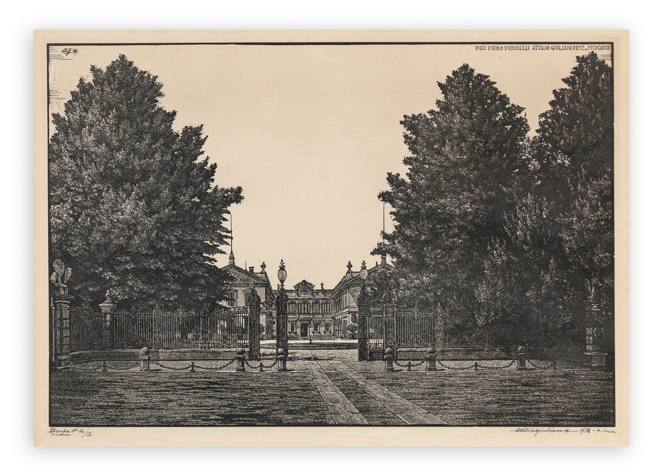 Sigla dell'Artista e iscrizione 'Per Piero Puricelli Attilio Giuliani fece MCMXXXII' in lastra