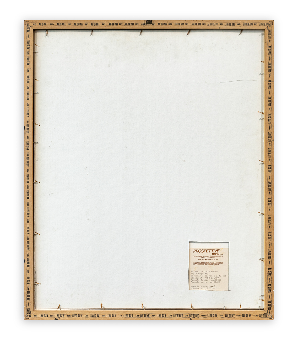 Certificato di garanzia a cura della Galleria Prospettive d'Arte (MI) al retro