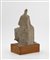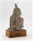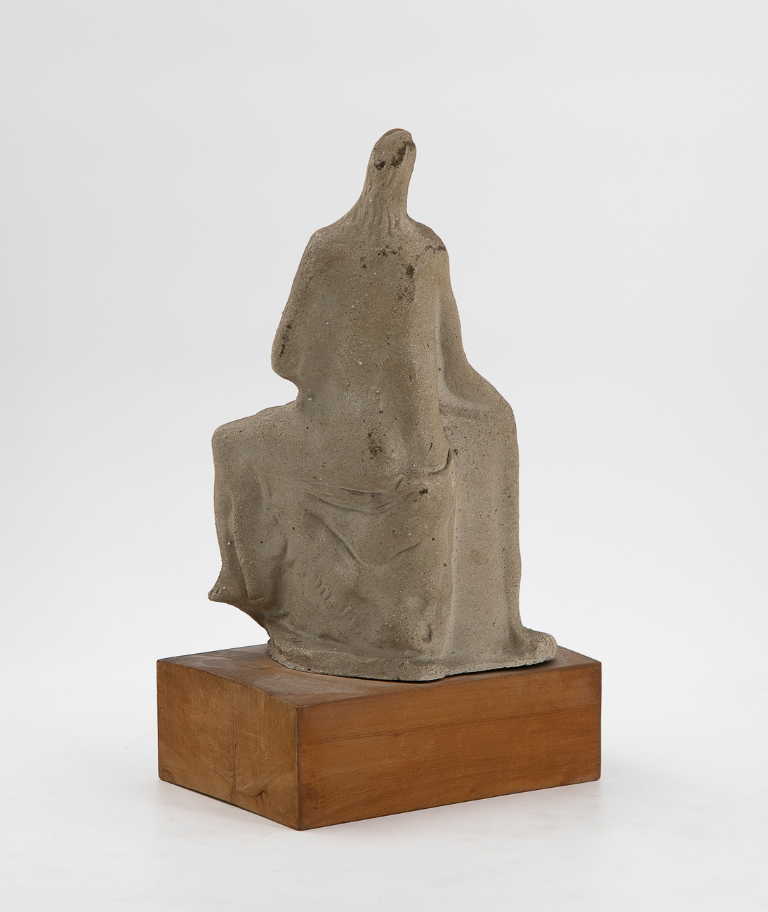 Scultura in gres ceramico poggiante su base in legno