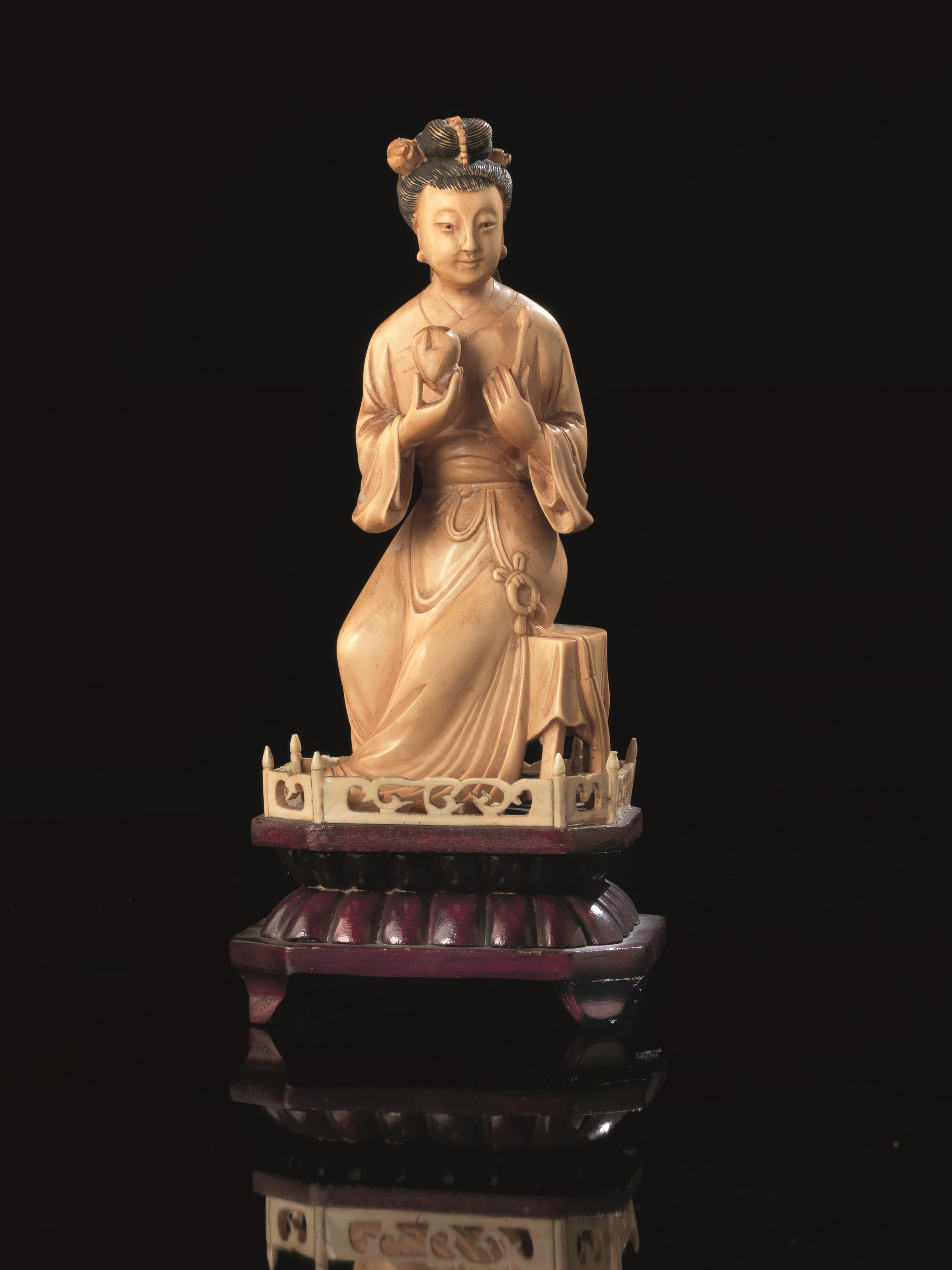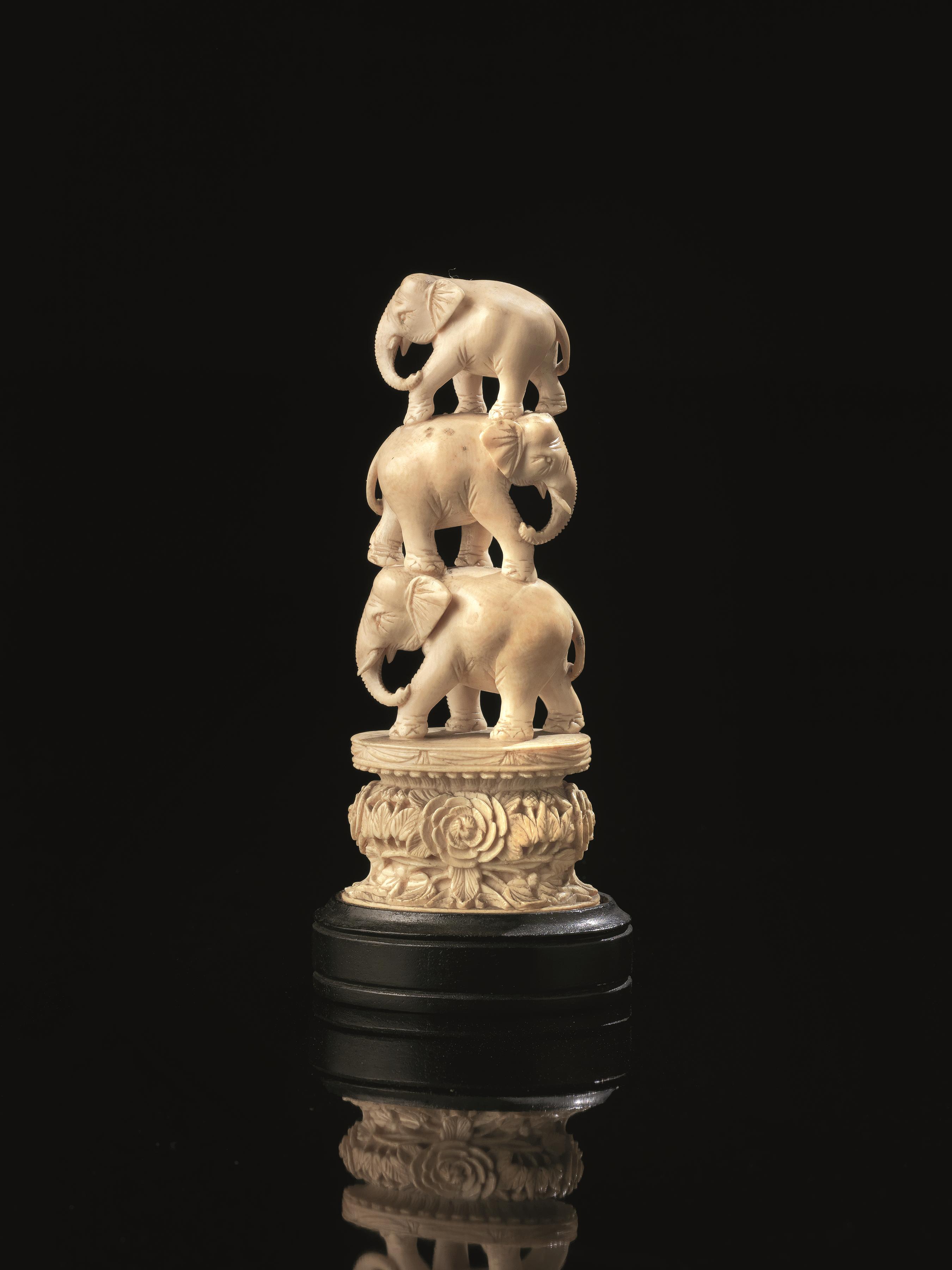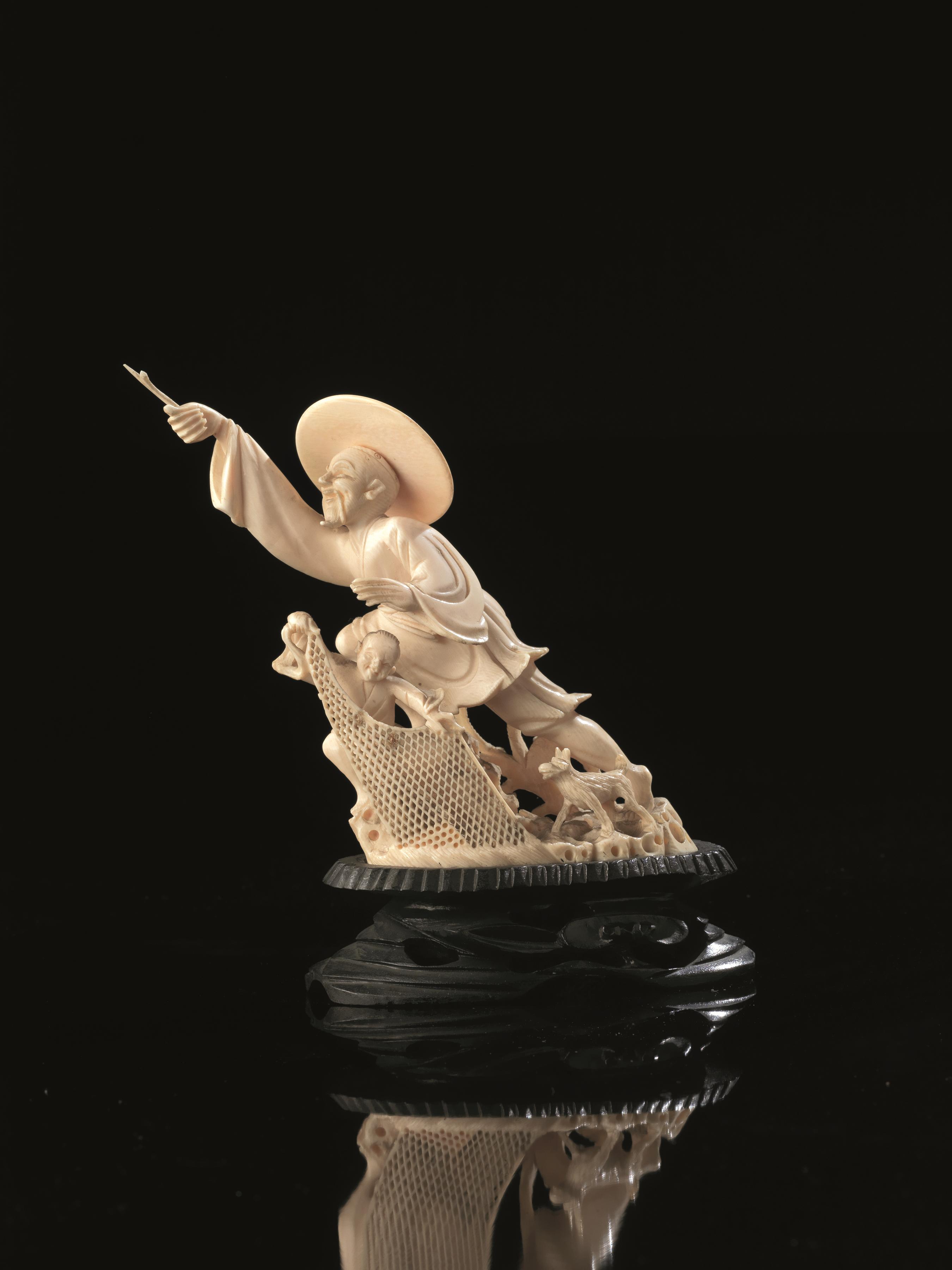 Three ivory carvings China 19th century