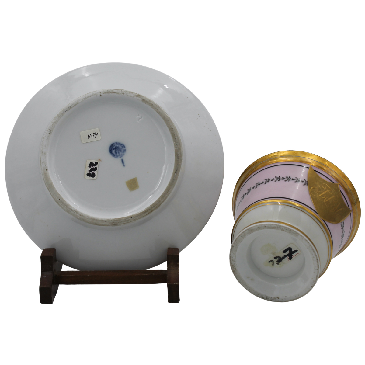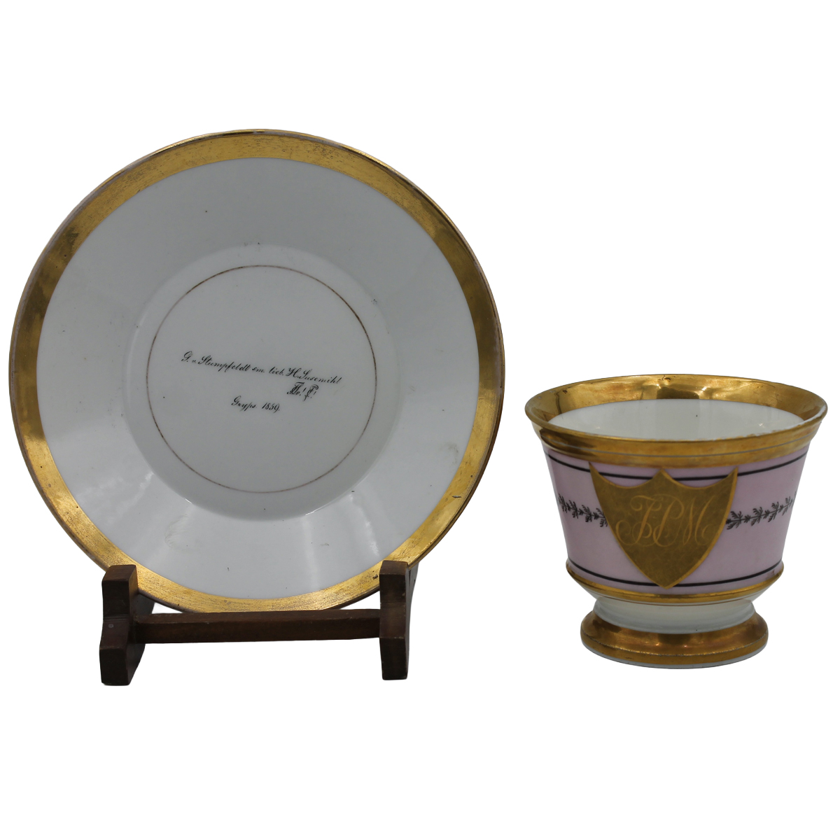 Tazza con piattino Antica porcellana decorata a motivi ornamentali policromi e dorati. Datata 1859