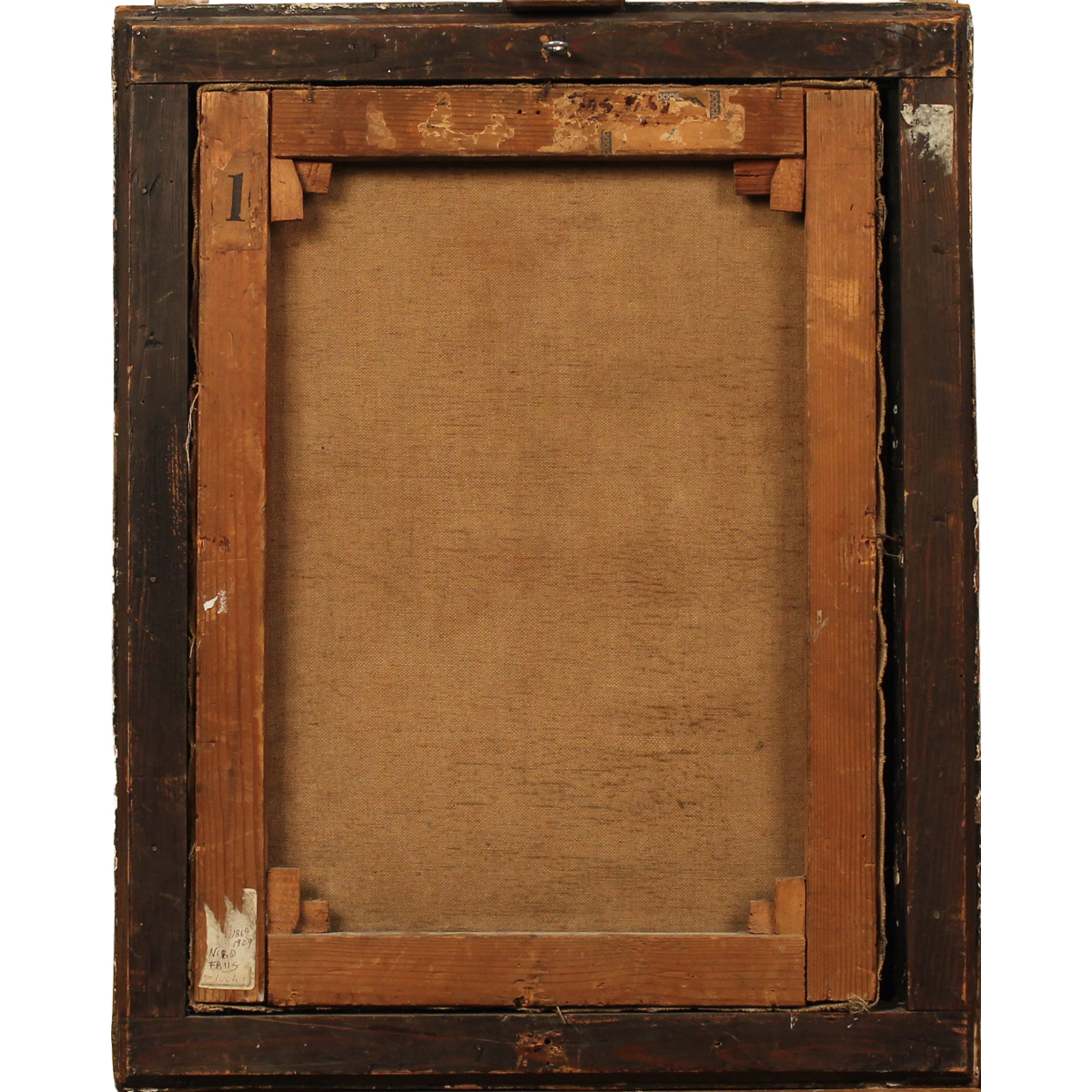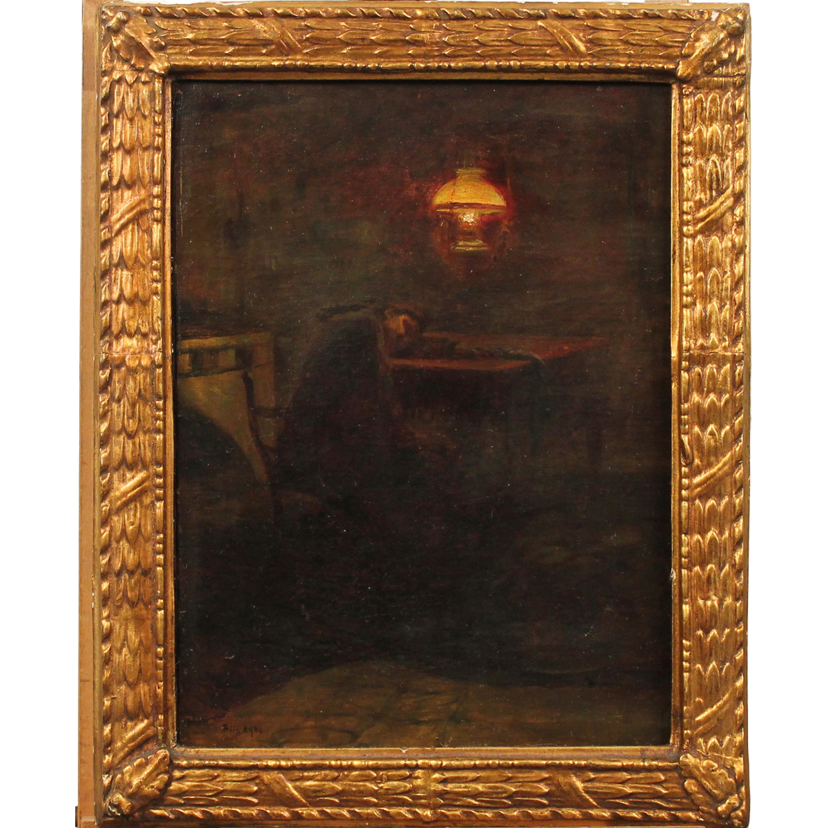 Friis Nibo (1869/1929) "Ubriaco all'osteria" Dipinto ad olio su tela in cornice dorata. Cm 51,5x38