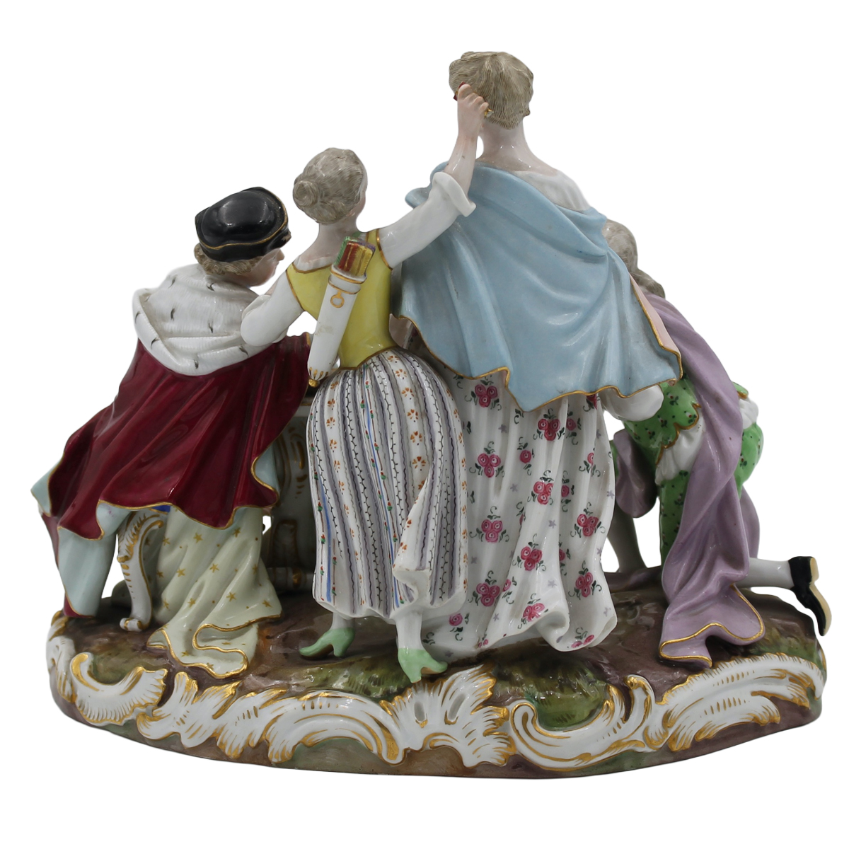 Scena di genere Gruppo a quattro figure in antica porcellana policroma (piccole mancanze). Meissen. Secolo XIX. Cm h 19