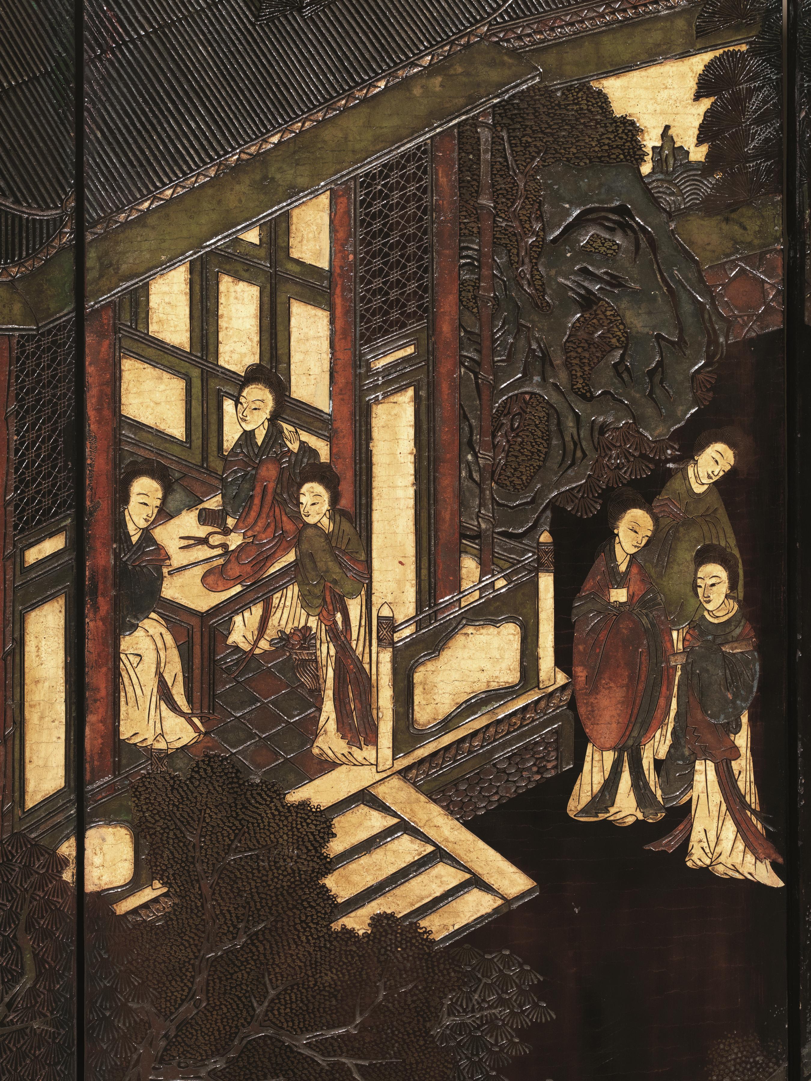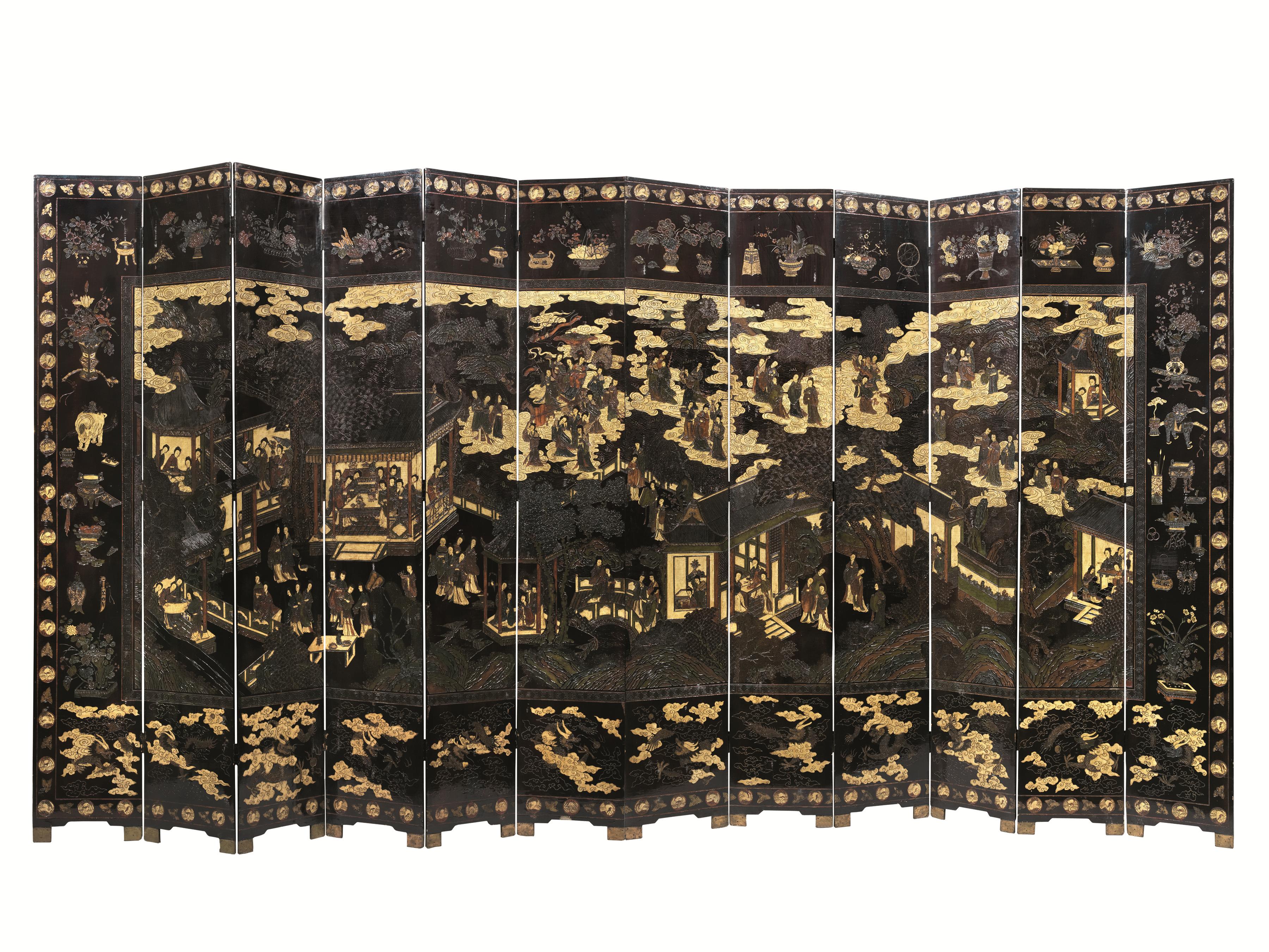 PARAVENTO COROMANDEL A DODICI ANTE, SEC. XIX