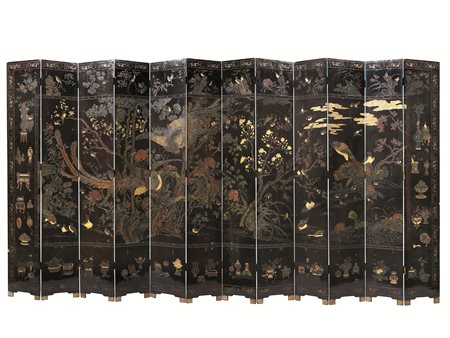 PARAVENTO COROMANDEL A DODICI ANTE, SEC. XIXfinemente intagliato frontalmente...