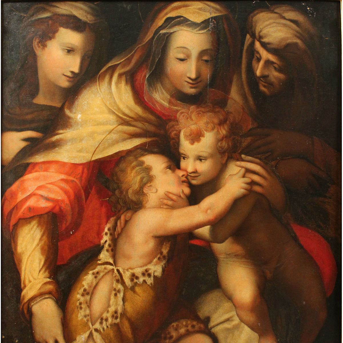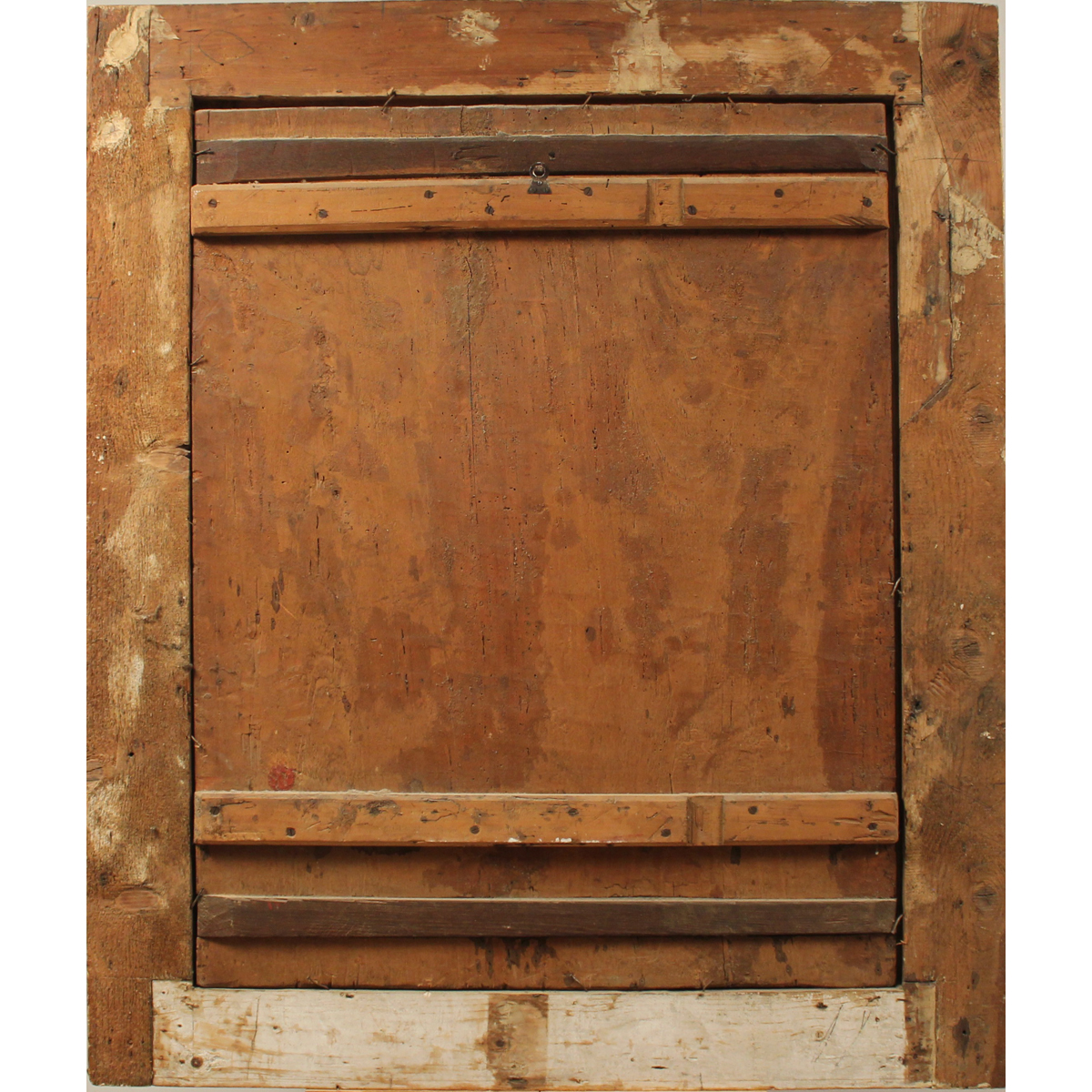 Scuola toscana del secolo XVII "Agnus dei" Grande dipinto ad olio su tavola in cornice in legno dorato e scolpito a rilievo sugli angoli (restauri e lievi danni alla cornice). Cm 110x86