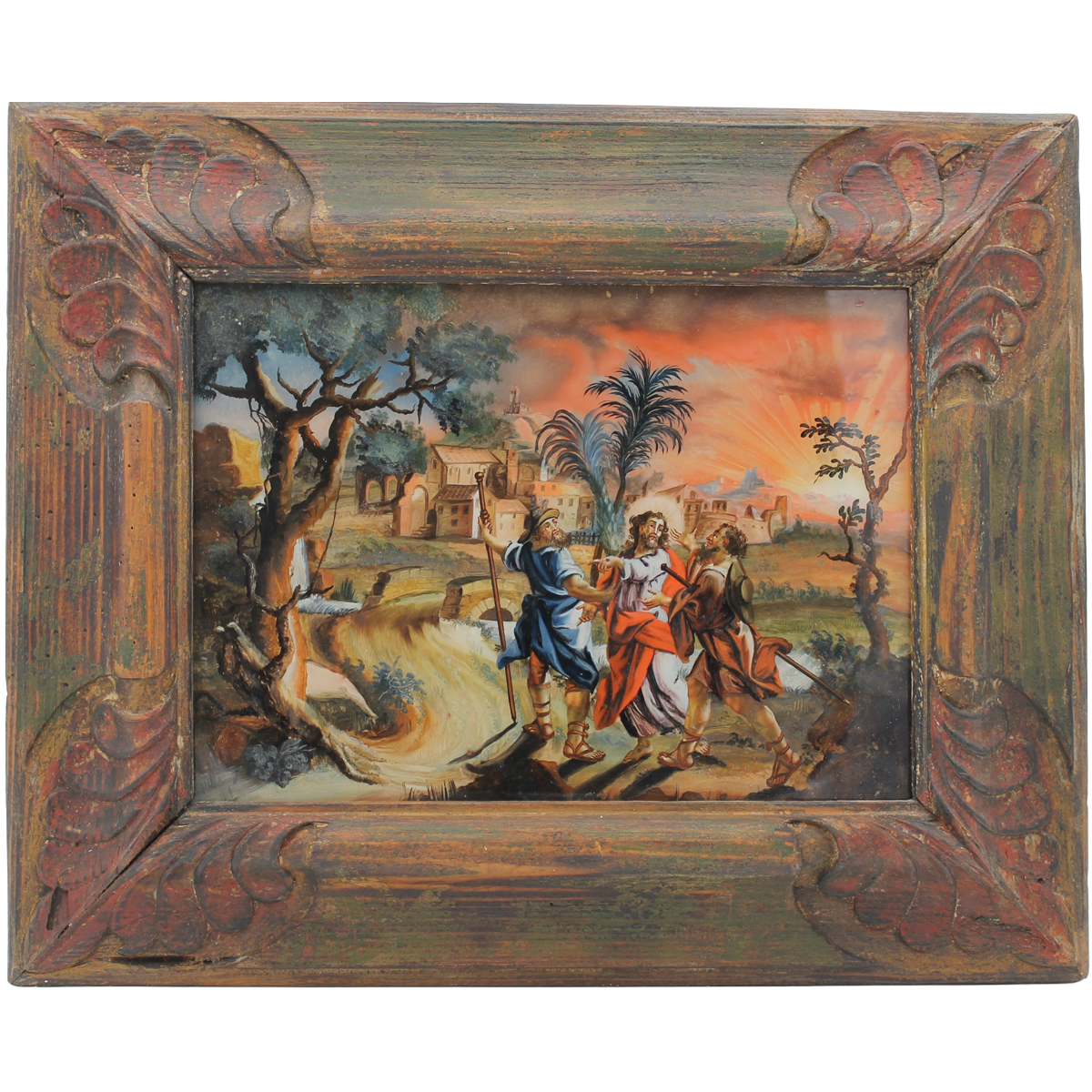 Scuola veneta della fine del secolo XVIII "Gesù nell'orto" Dipinto ad olio su vetro in cornice in legno dipinto. CM 25x32,5