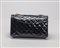 in pelle verniciata color nero, tracolla a catena in metallo dorato, doppio scomparto interno, cm 24, con sacchetto e scatolain pelle verniciata color nero, tracolla a catena in metallo dorato, doppio scomparto interno, cm 24, con sacchetto e scatola