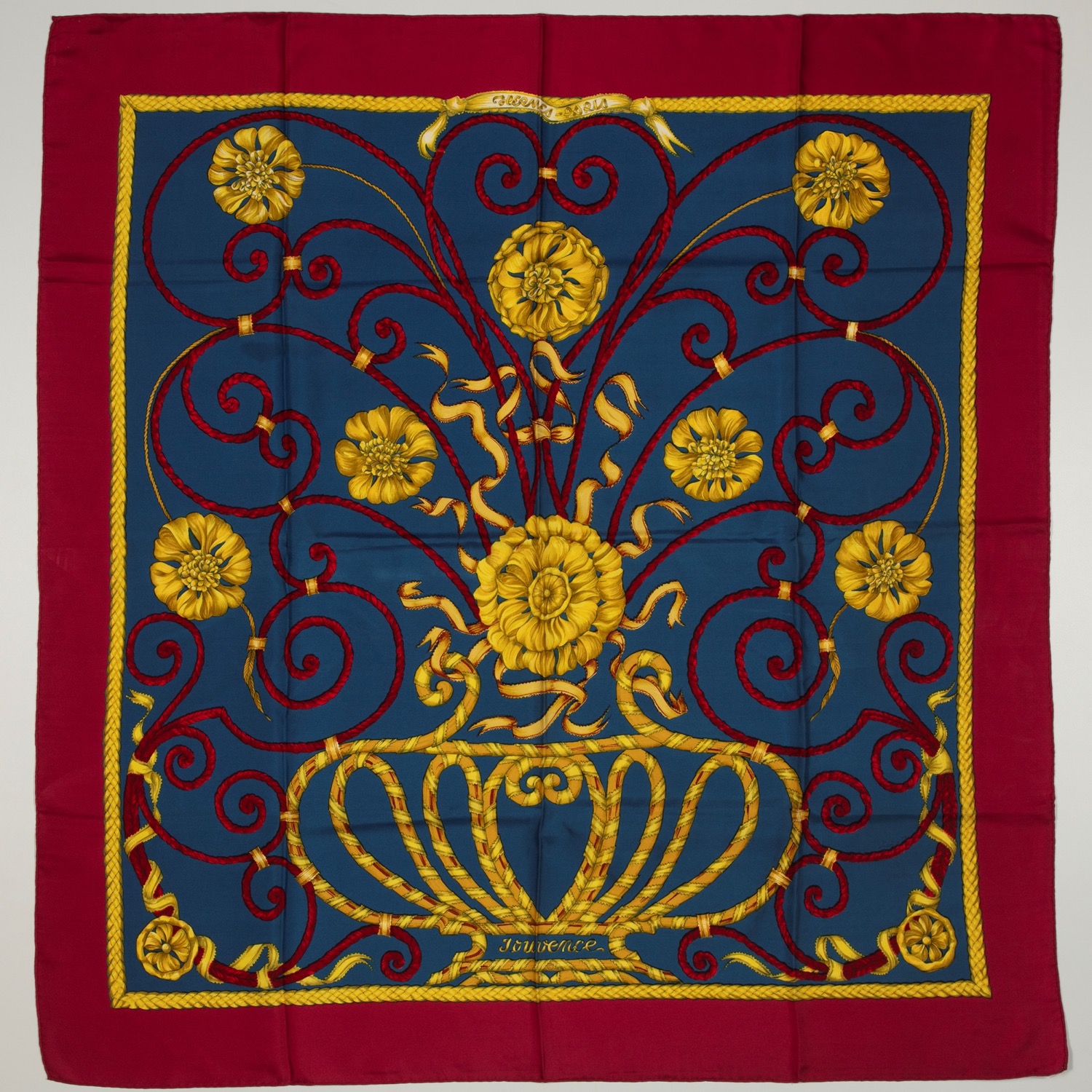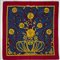 in seta su fondo color blu, bordo color rosso, Leila Menchari (lievi segni d'uso)in seta su fondo color blu, bordo color rosso, Leila Menchari (lievi segni d'uso)