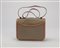in tela color kaki, tracolla e profili in pelle color nocciola, interno in pelle, dettagli in metallo dorato, cm 23, con sacchetto (segni d'uso)in tela color kaki, tracolla e profili in pelle color nocciola, interno in pelle, dettagli in metallo dorato, cm 23, con sacchetto (segni d'uso)