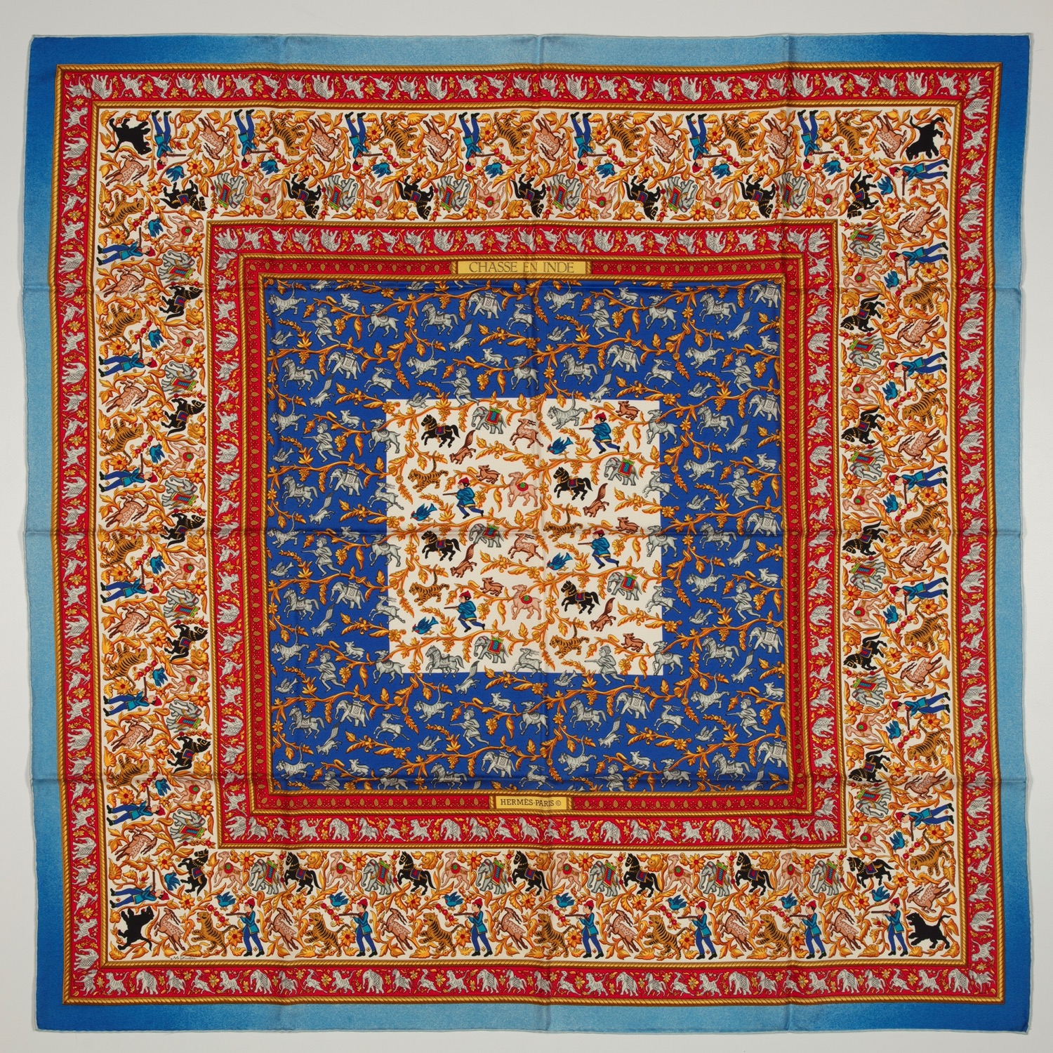in seta su fondo color blu e rosso, bordo color blu, Michel Duchênein seta su fondo color blu e rosso, bordo color blu, Michel Duchêne