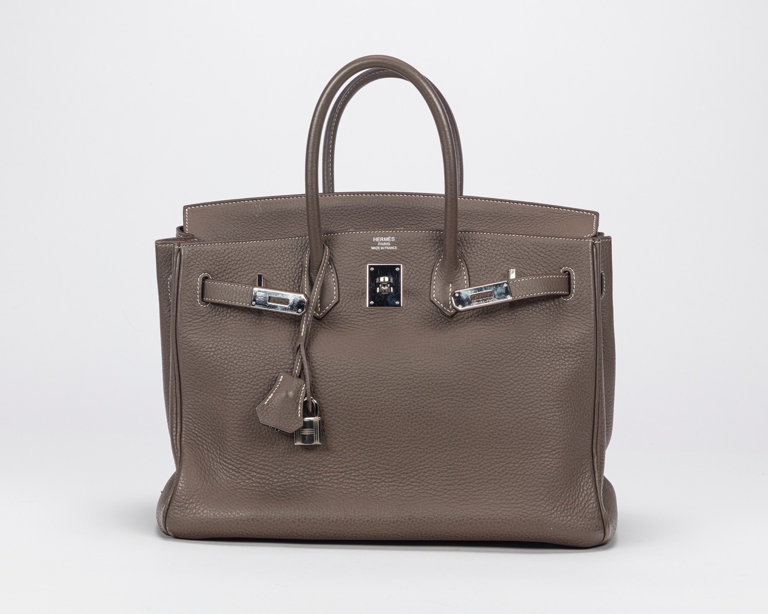 in pelle clémence color Etoupe, dettagli in palladio, con sacchetto e scatola (lievi segni d'uso)in pelle clémence color Etoupe, dettagli in palladio, con sacchetto e scatola (lievi segni d'uso)