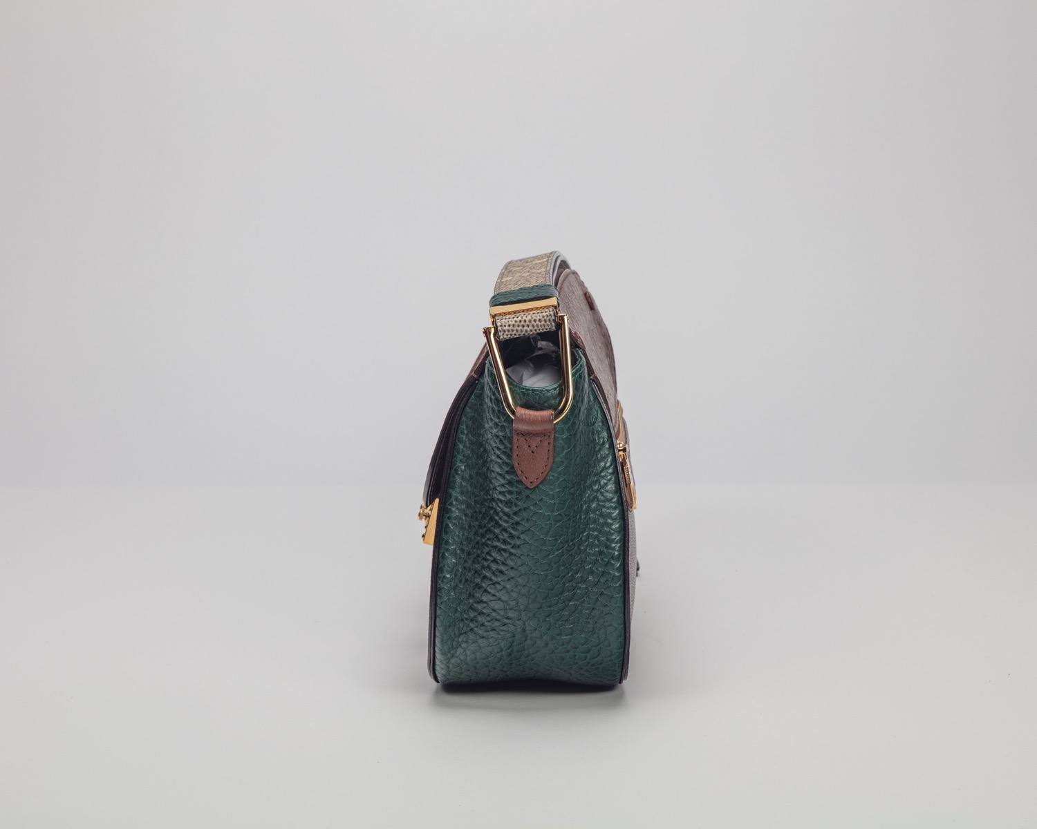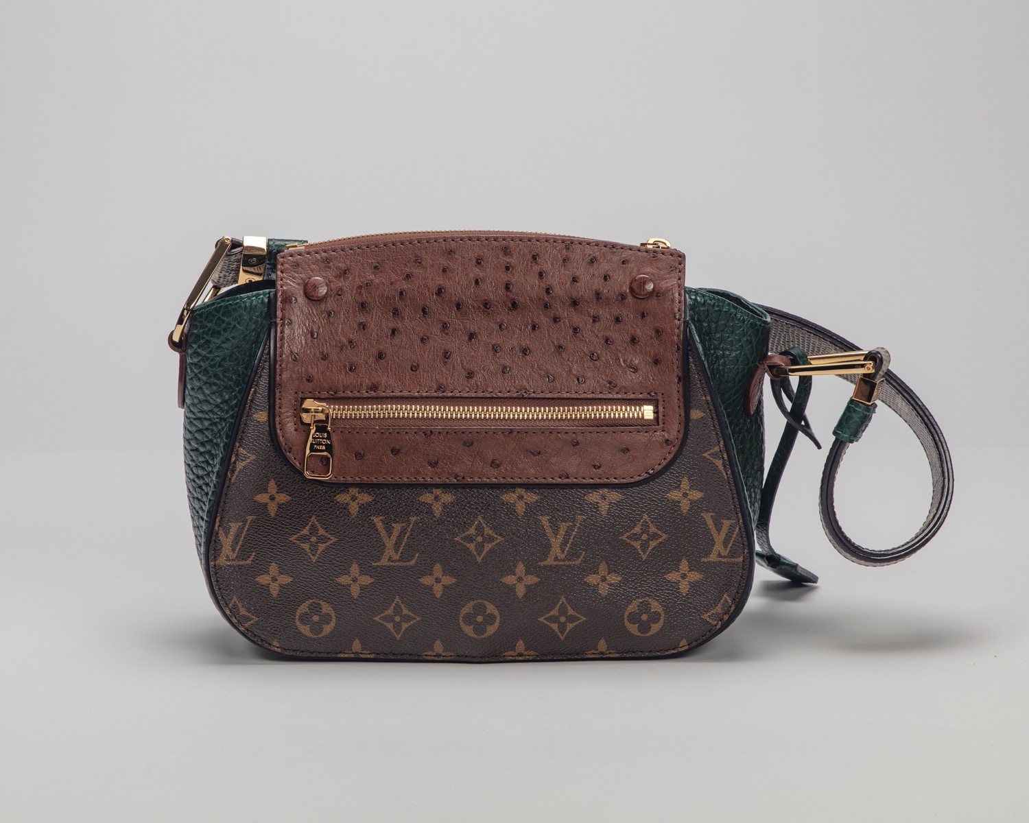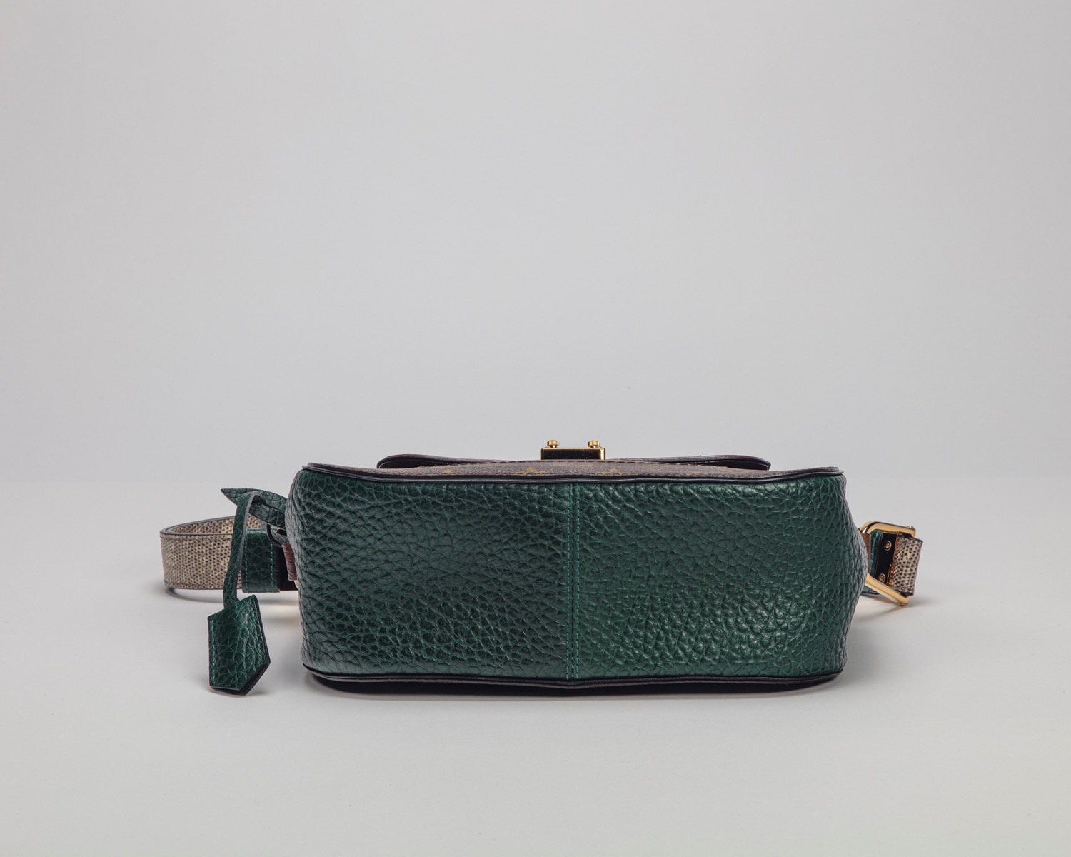 in tela monogram, pelle color verde e pelle di struzzo color marrone, tracolla, dettagli in metallo dorato, cm 26in tela monogram, pelle color verde e pelle di struzzo color marrone, tracolla, dettagli in metallo dorato, cm 26