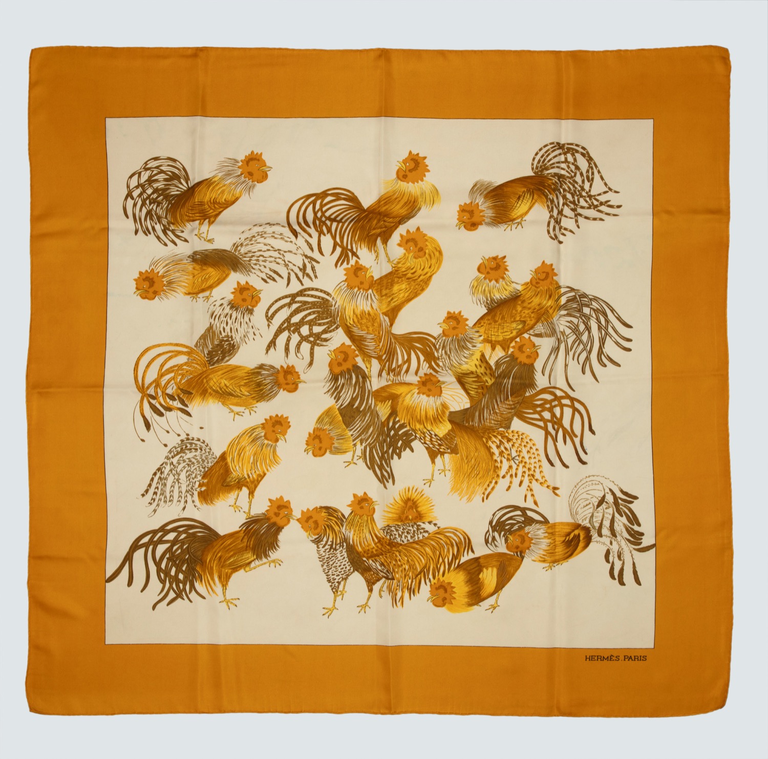 in seta su fondo color bianco, bordo color ocra, La Torre (segni d'uso), (raro)in seta su fondo color bianco, bordo color ocra, La Torre (segni d'uso), (raro)