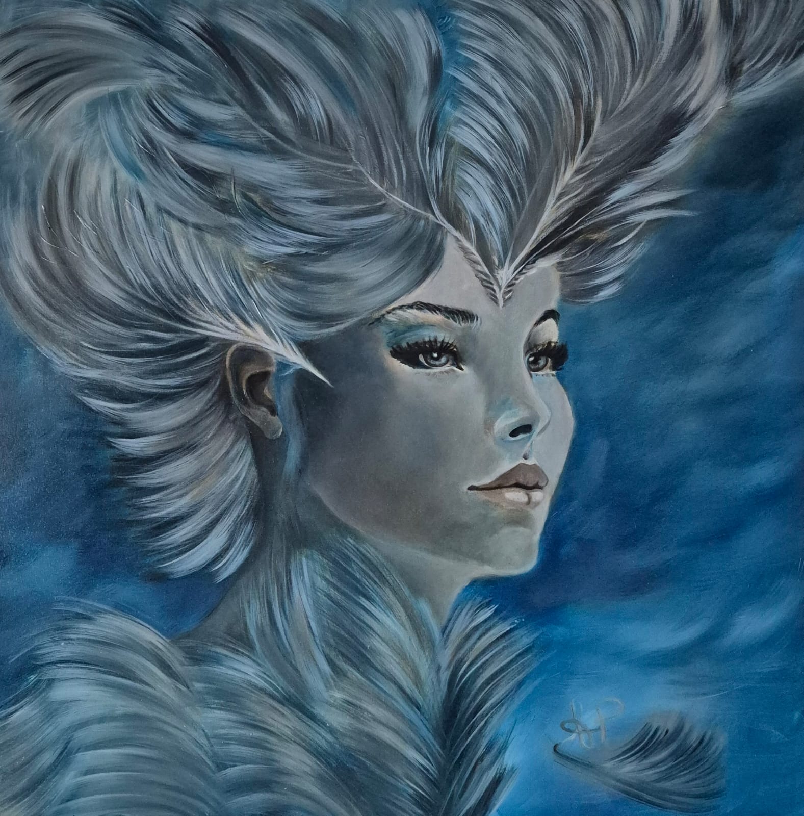 Certificato di autenticitàLa fenice si trasforma in donna, esprimendo un'anima intensa e viva. Ogni piuma racconta storie di rinascita e passione, invitando a esplorare il profondo e a celebrare la bellezza di un destino divino.