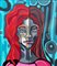 Il quadro ritrae il volto di una donna dai capelli rossi accesi e dagli occhi gialli intensi, diviso in due metà cromaticamente opposte. La parte sinistra è attraversata da tonalità chiare e leggere, mentre la destra è dominata da colori più cupi, profondi e introspettivi.