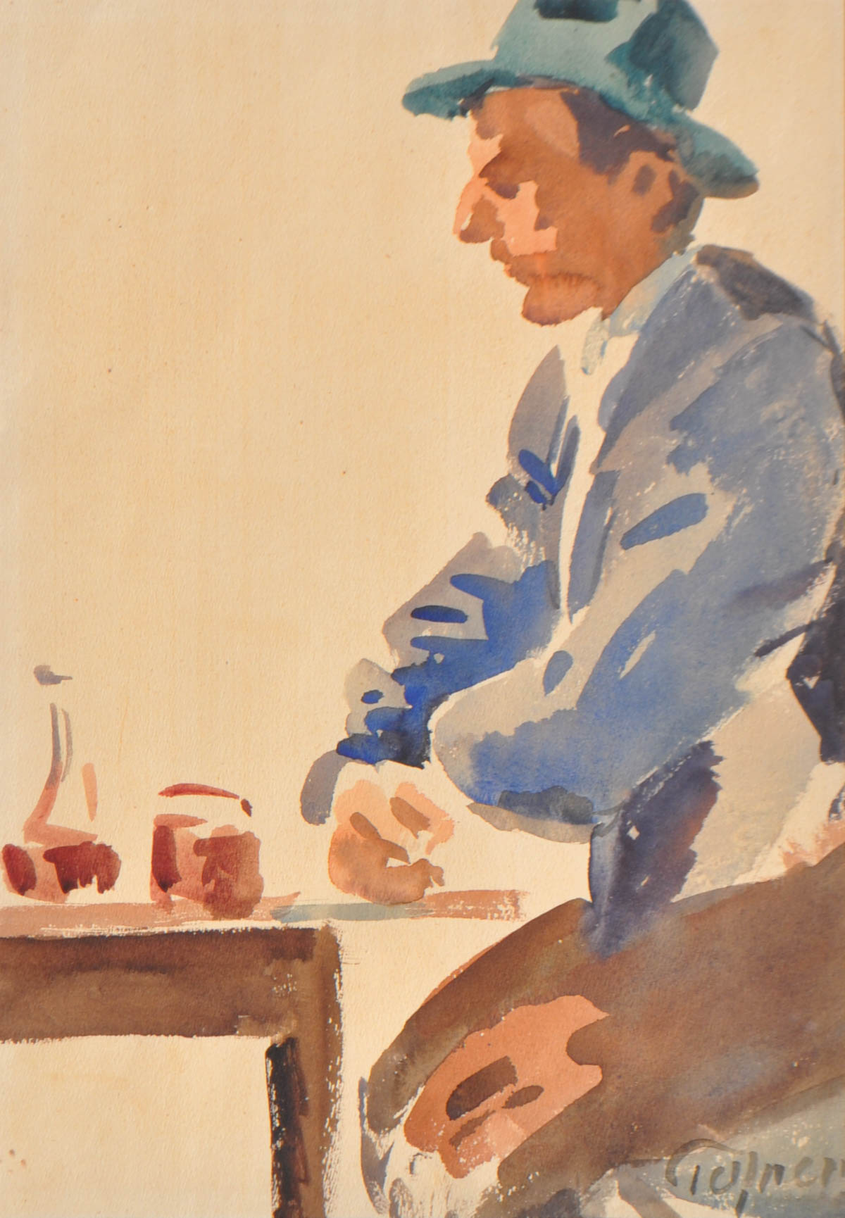 Josef Telfner (Meran/Merano 1874 - Gufidaun/Gudon 1948) Giocatore di carte;Acquerello, 35 x 24 cm, in cornice