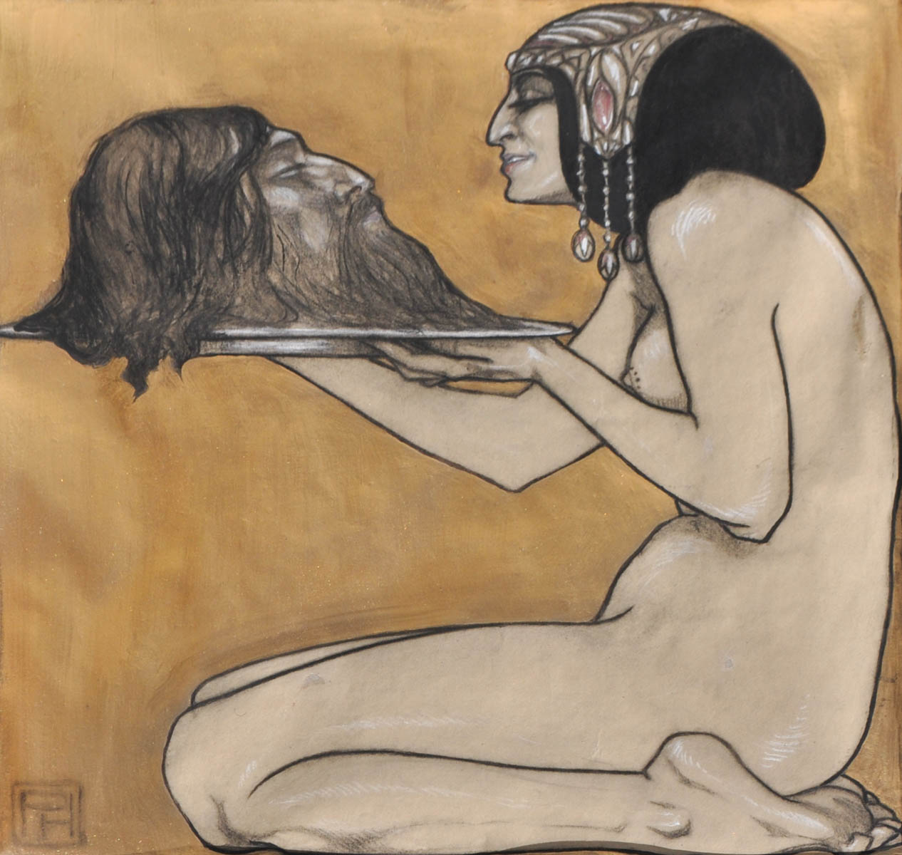 Monogrammist/Monogrammista "PH", um 1900 ca. Salomè con la testa di San Giovanni;Tecnica mista con vernice dorata su cartone, 50,5 x 46 cm,