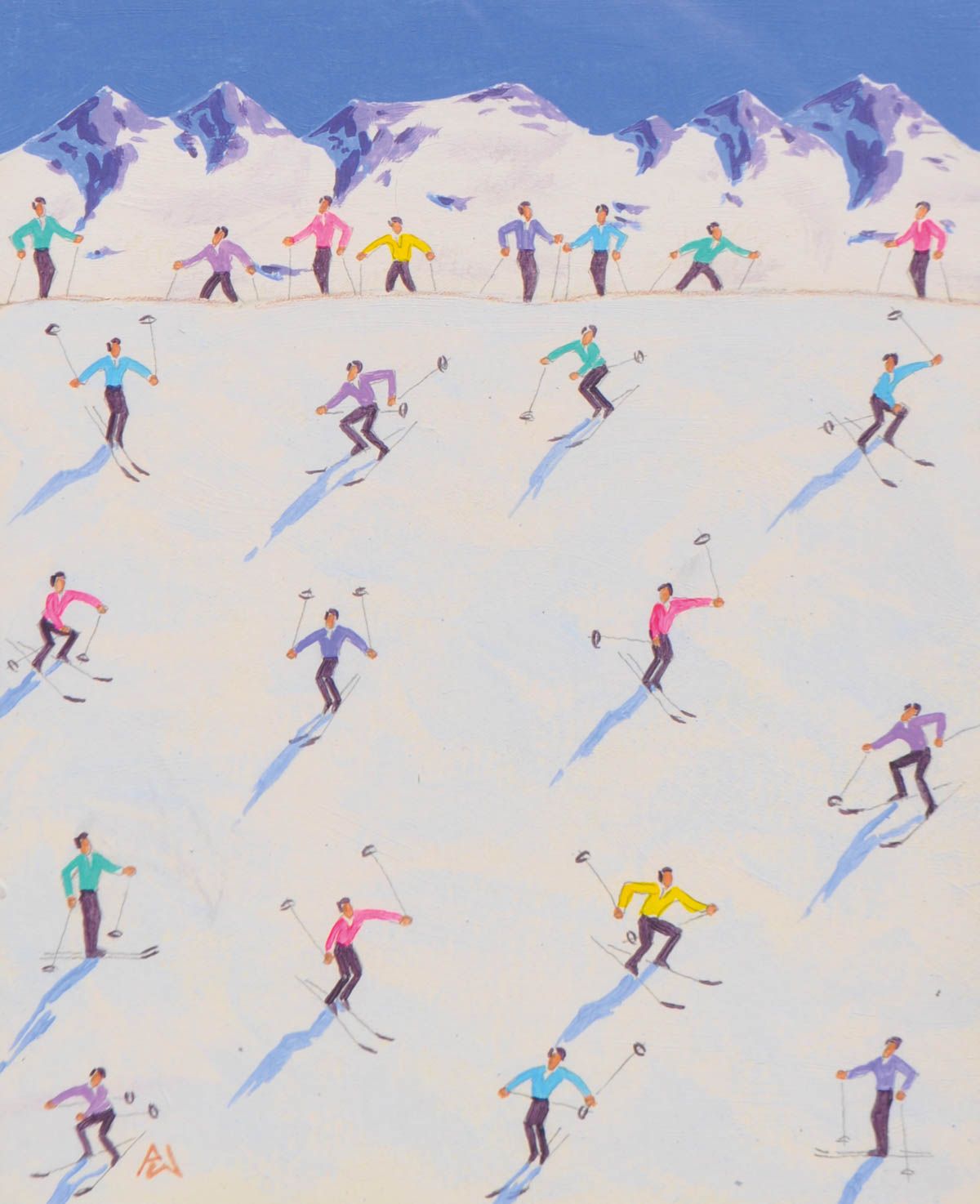 Peter Waldner (Hall in Tirol 1948) Sciatori sulla pista, 2017 ca.;Tempera su...