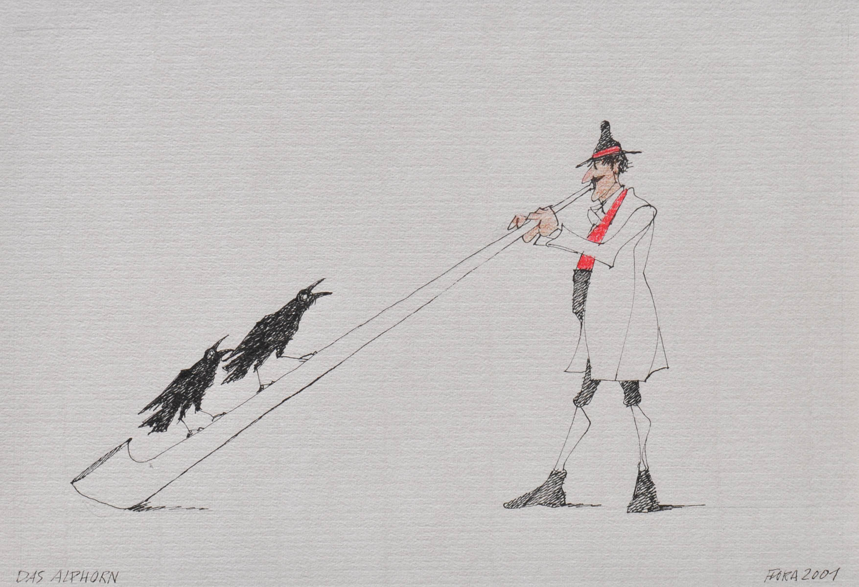 Paul Flora (Glurns/Glorenza 1922 - Innsbruck 2003) Il corno alpino, 2001;China e matite colorate, 22 x 32 cm (entro il passepartout)