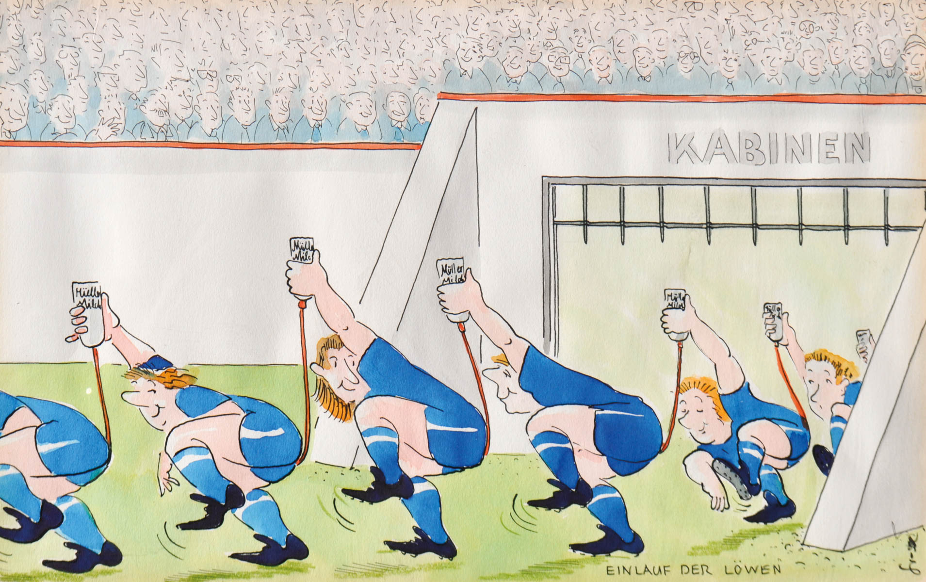 Dietmar Grosse Arrivo dei leoni, 1990 ca.;China e acquerello, 21 x 33,5 cm, in cornice