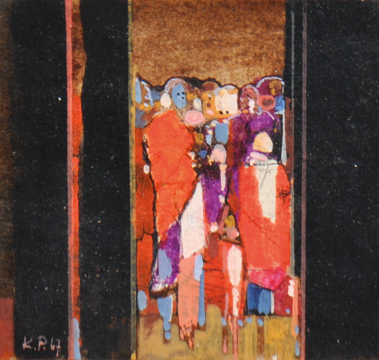 Karl Plattner (Mals/Malles 1919 - Mailand/Milano 1986) La famiglia, 1967;China e tempera cerata su carta, 9,1 x 9,8 cm, in cornice