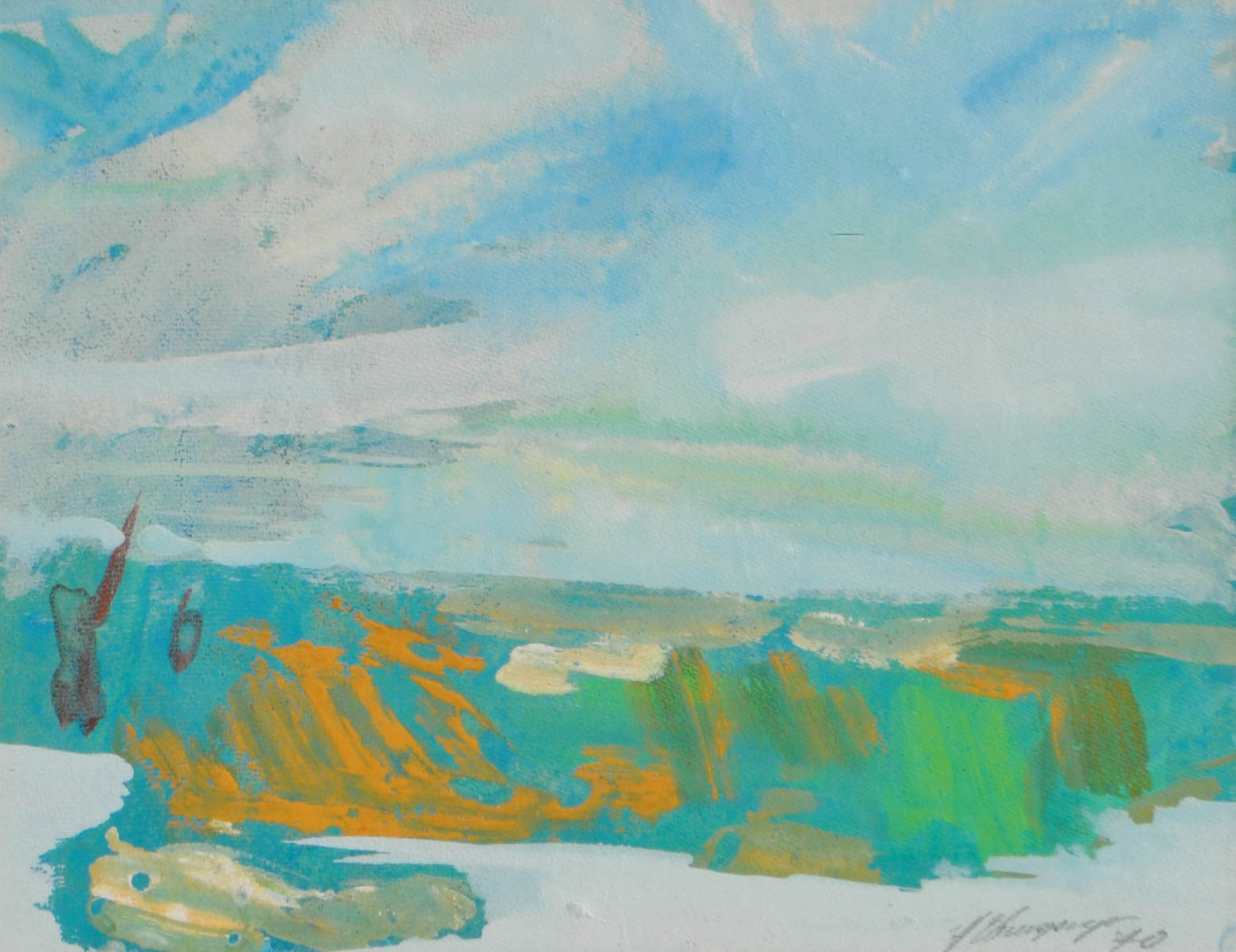 Hans Ebensperger (Prad am Stilfserjoch 1929 - 1971) Paesaggio invernale, 1970;Tempera su carta, 23,5 x 30 cm, in cornice