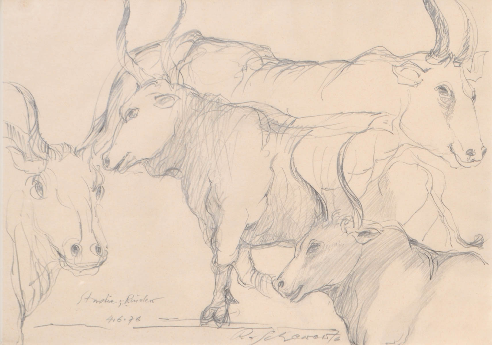 Robert Scherer (Kortsch/Corces 1928) Bestiame, 1976;Matita, 28,5 x 40 cm, in cornice